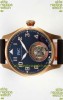 IWC Super Clone Portugese Hand-Wound Genuine Tourbillon Blue Dial Rose Gold Casing Watch