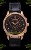 Black Dial with Day/Date Indicator at 12 O'Clock, Date Counter, Day of Week Counter and 12/24 hours counter with Day and night Moon Phase Indicator.
