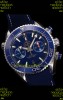 Blue Rubber Strap with Omega Styled Folding Clasps complete with Omega Markings and Engravings
