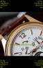 Genuine Swiss 9015 Movement assembled to Resemble the Authentic Patek Philippe PP 324 Calibre Style Movement. Updated Rotor, Bridged and Engravings on Movement with Rose Gold Plated Patek Philippe Stamped Rotor
