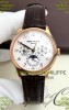 Genuine Leather Strap with Rose Gold Plated Folding Clasp complete with Patek Philippe Markings.