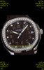 Brown Colored Textured Dial with Date Window at 3 O'Clock. Diamonds Bezel