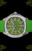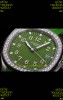 Green Colored Textured Dial with Date Window at 3 O'Clock. Diamonds Bezel
