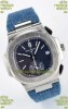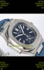 Genuine Fabric/Leather Hybrid Strap in Blue with Double Fold Stainlless Steel Clasps with Patek Philippe Markings/Engravings
