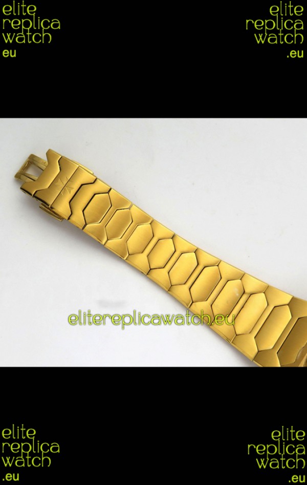 18K Yellow Gold Plating on 904L Stainless Steel Strap with Folding Clasps complete with all Markings and Engravings as per the originals