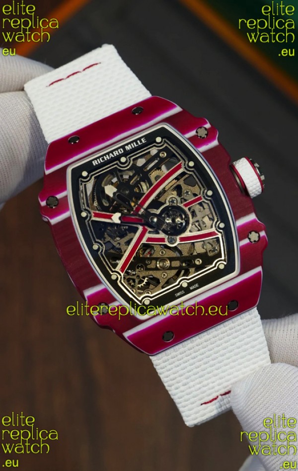 Richard Mille Super Clone RM67-02 Mutaz Barshim Red Carbon TPT 37 Grams Watch White Strap