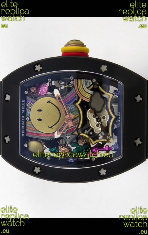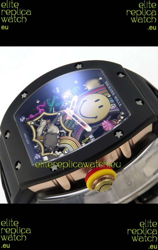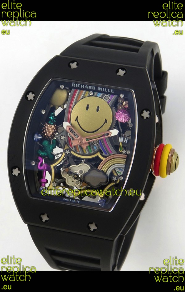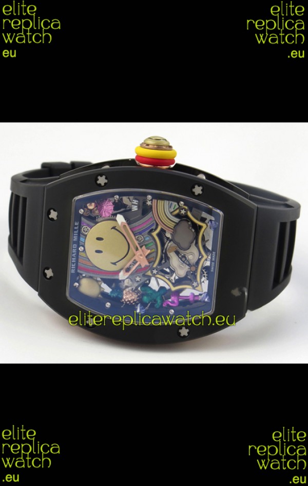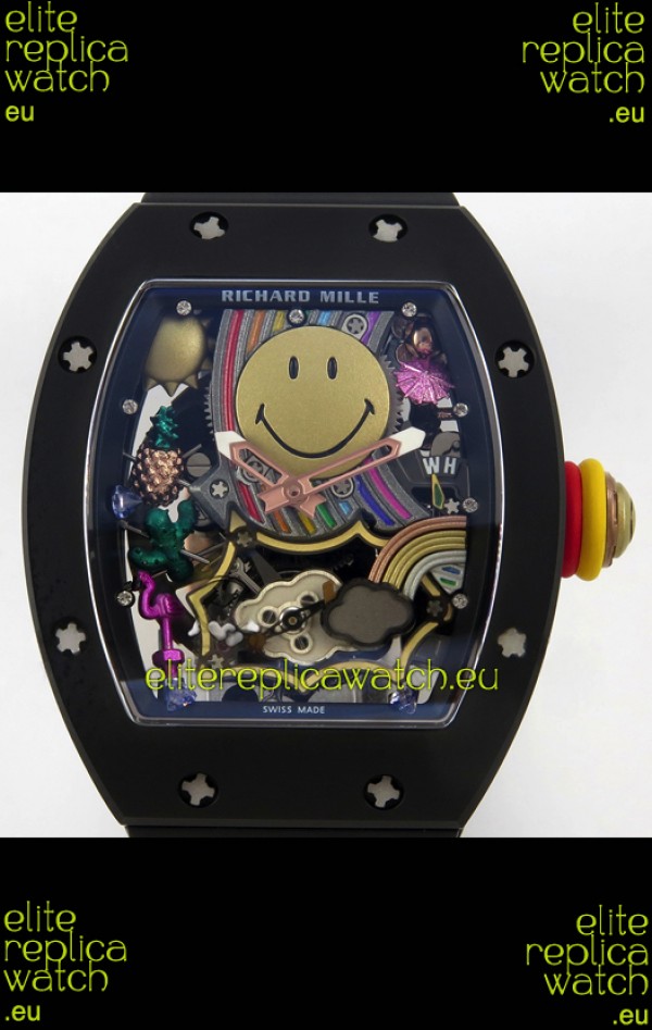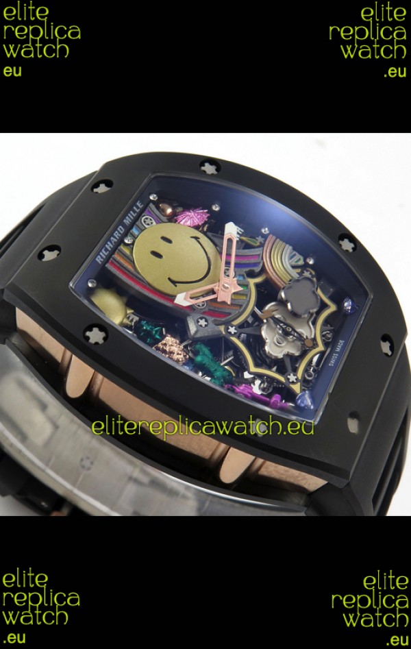 Richard Mille Super Clone RM088 Smiley Tourbillon Black Ceramic Rubber Strap Watch