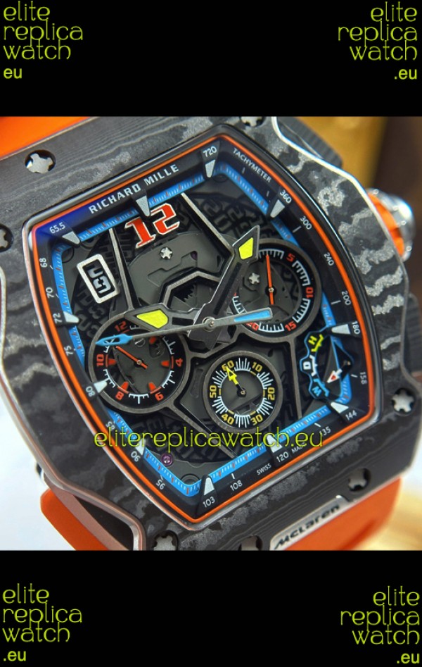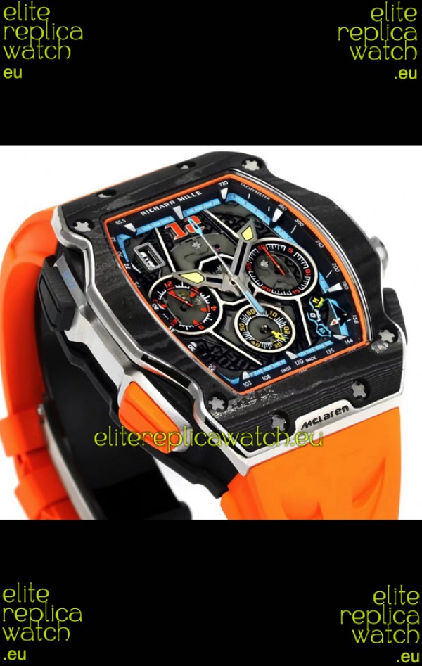 Richard Mille Super Clone RM65-01 Carbon Casing Replica Watch in Orange Strap