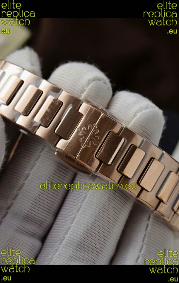 18K Rose Gold Plating on 904L Stainless Steel Strap with Steel Folding Clasp complete with Patek Philippe Markings.