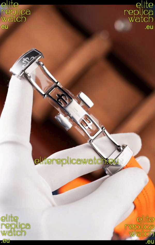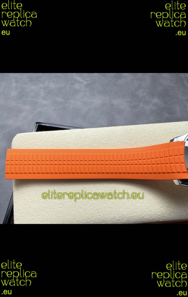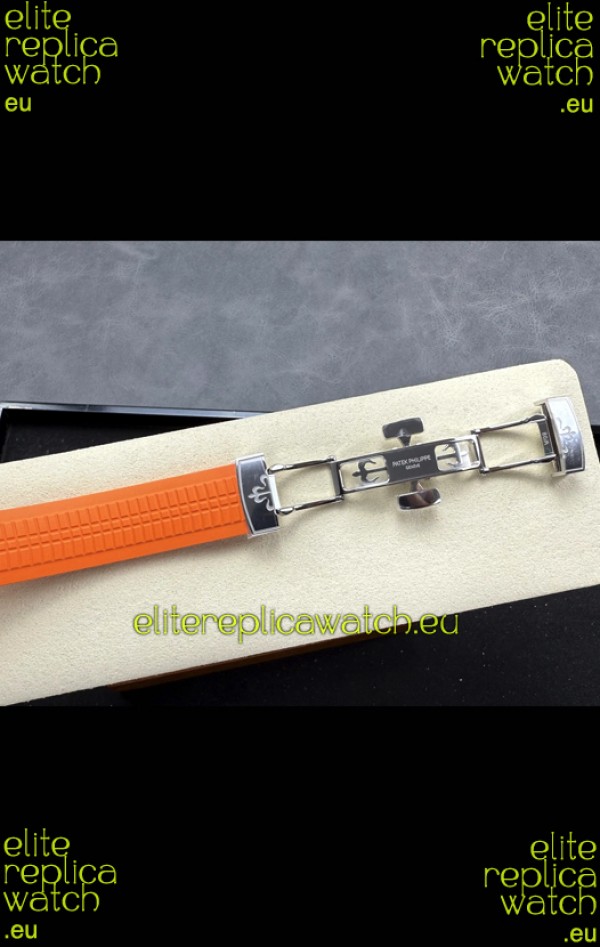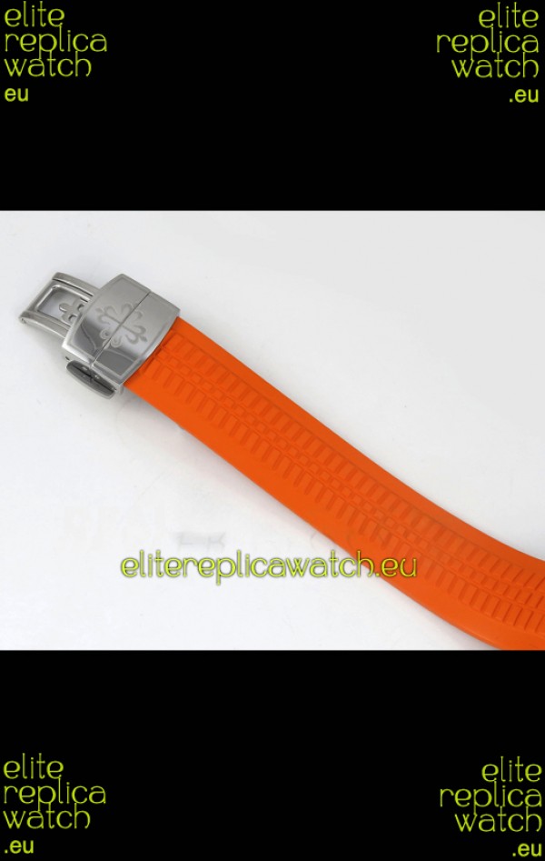 Curved Rubber Strap with Steel Folding Clasp complete with Patek Philippe Markings. A Highly Updated Clasps for this series with much more accurate markings/engravings.