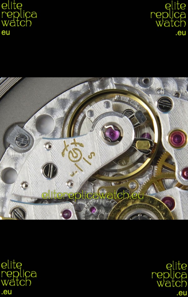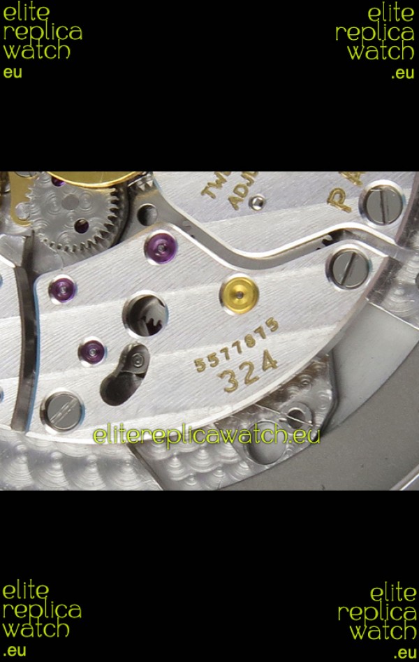 Genuine Swiss 9015 Movement assembled to Resemble the Authentic Patek Philippe PP 324 CS Calibre Style Movement. Updated Rotor, Bridged and Engravings on Movement.