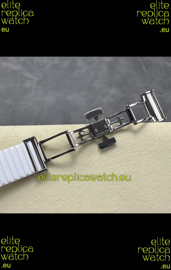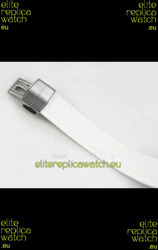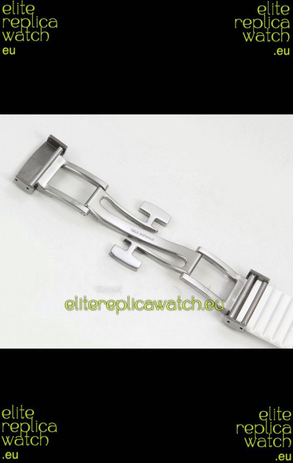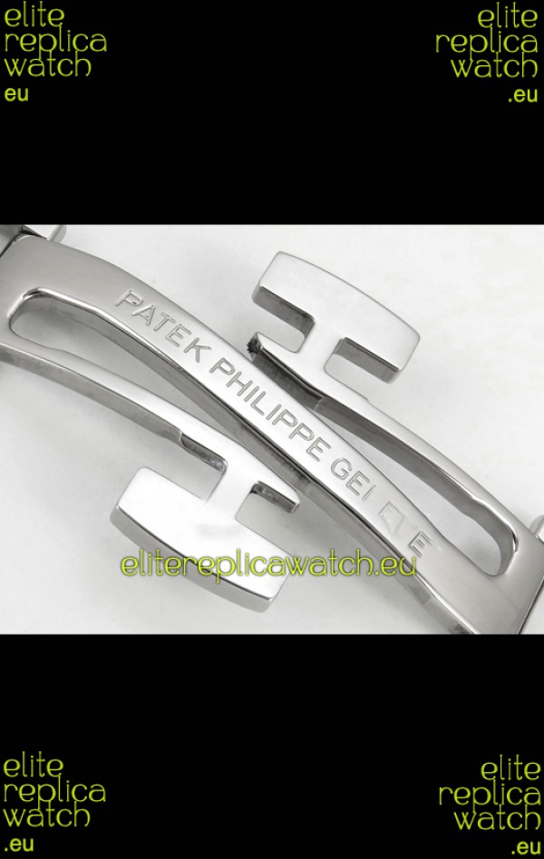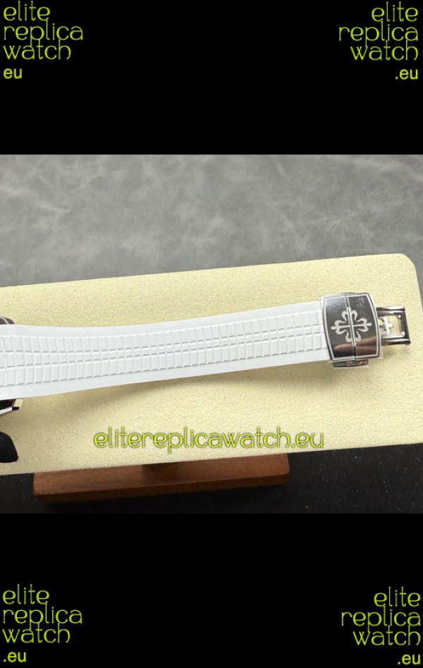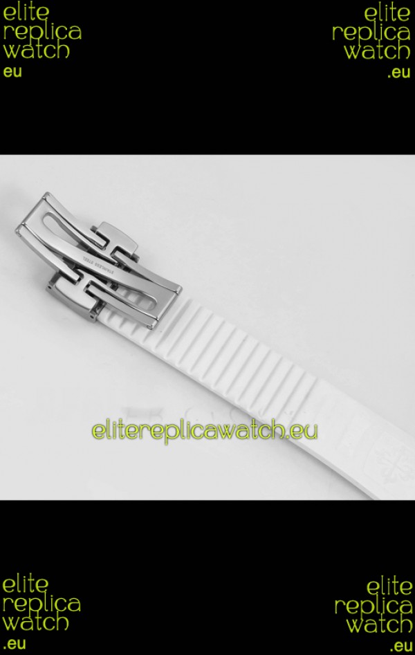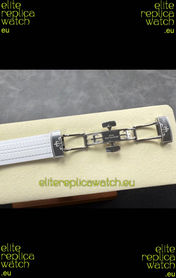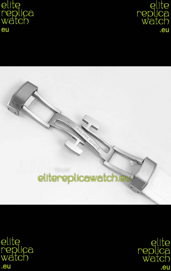 Curved Rubber Strap with Steel Folding Clasp complete with Patek Philippe Markings. A Highly Updated Clasps for this series with much more accurate markings/engravings.