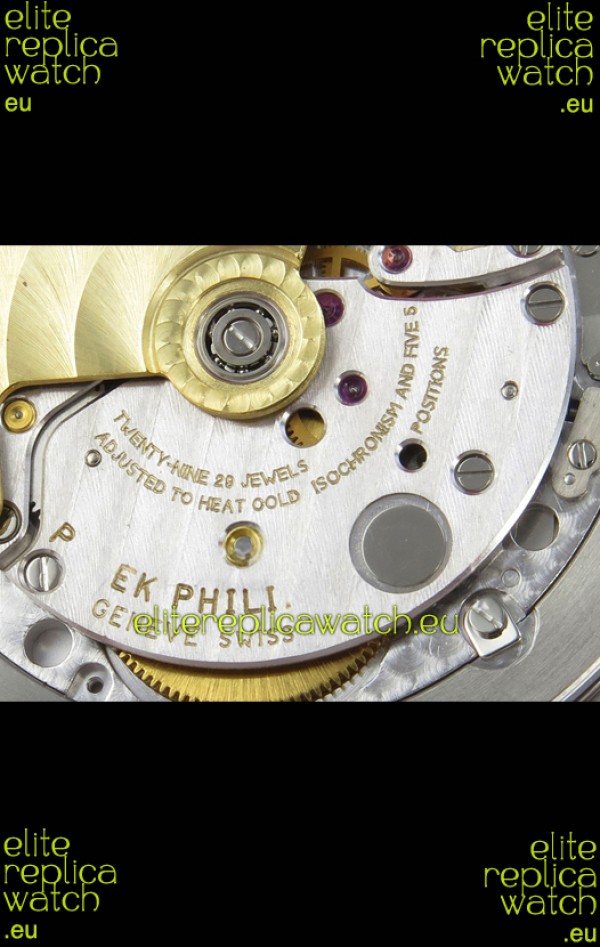 Genuine Swiss 9015 Movement assembled to Resemble the Authentic Patek Philippe PP 324 CS Calibre Style Movement. Updated Rotor, Bridged and Engravings on Movement.