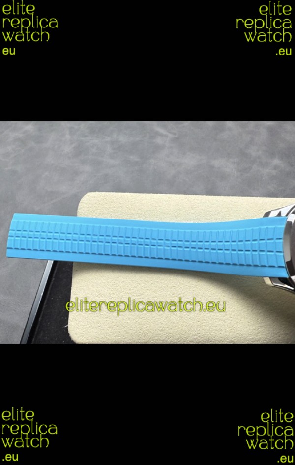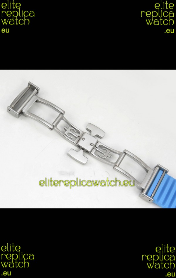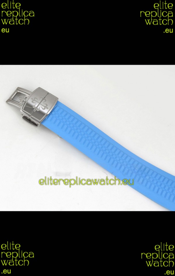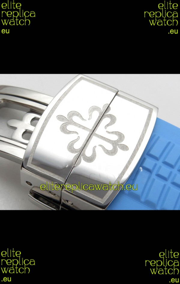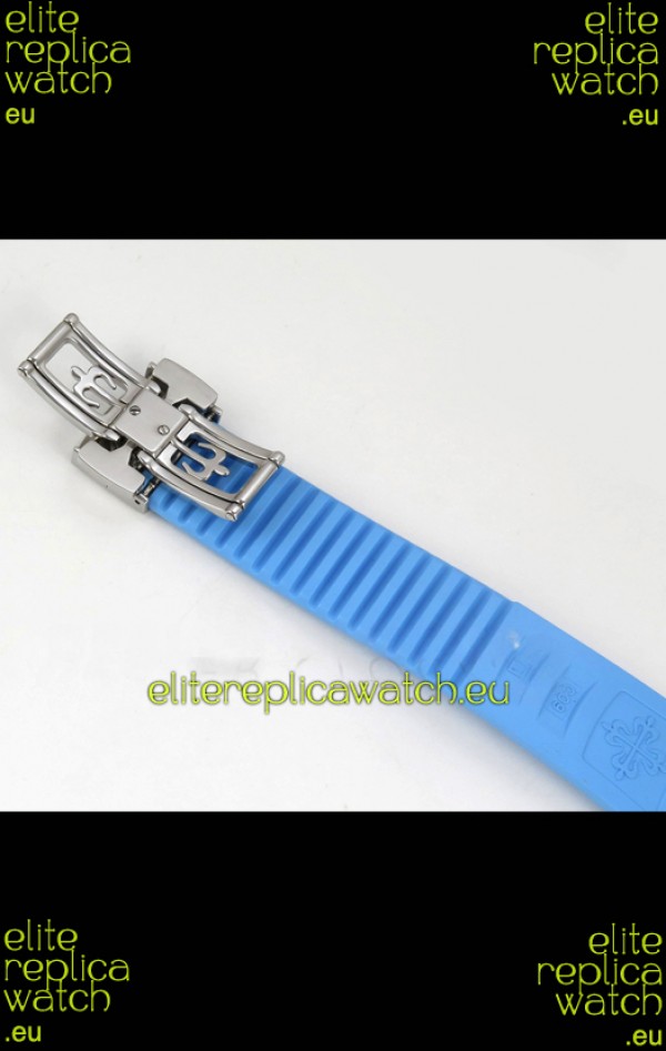 Curved Rubber Strap with Steel Folding Clasp complete with Patek Philippe Markings. A Highly Updated Clasps for this series with much more accurate markings/engravings.