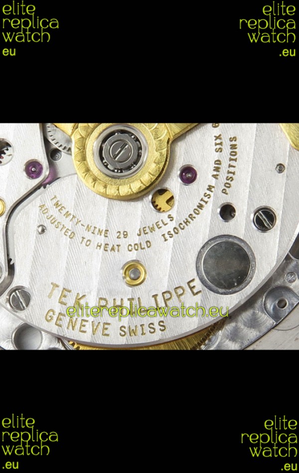 Genuine Swiss 9015 Movement assembled to Resemble the Authentic Patek Philippe PP SC324 Calibre Style Movement. Updated Rotor, Bridged and Engravings on Movement.