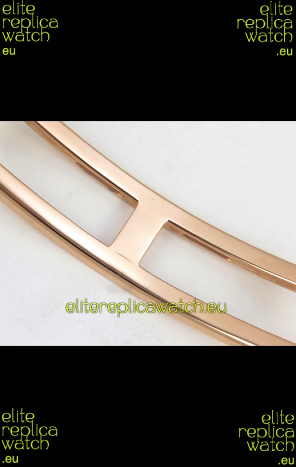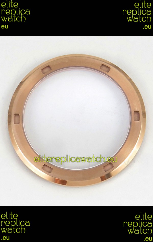 18K Rose Gold Plating on 904L Solid Stainless Steel Case with Open Case Back Cover in Steel. Polished Bezel Borders