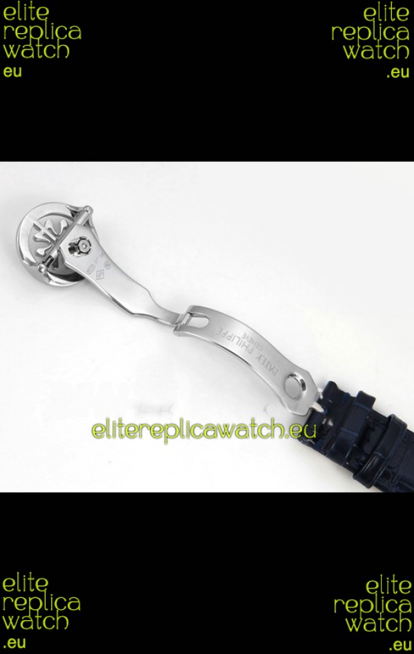 Genuine Leather Strap with Steel Folding Clasp complete with Patek Philippe Markings.