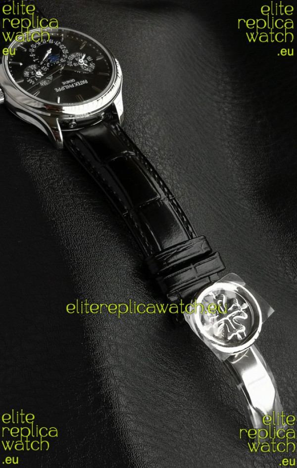 Genuine Leather Strap with Steel Folding Clasp complete with Patek Philippe Markings.