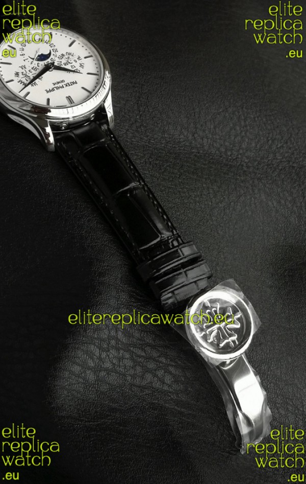 Genuine Leather Strap with Steel Folding Clasp complete with Patek Philippe Markings.