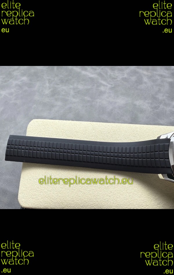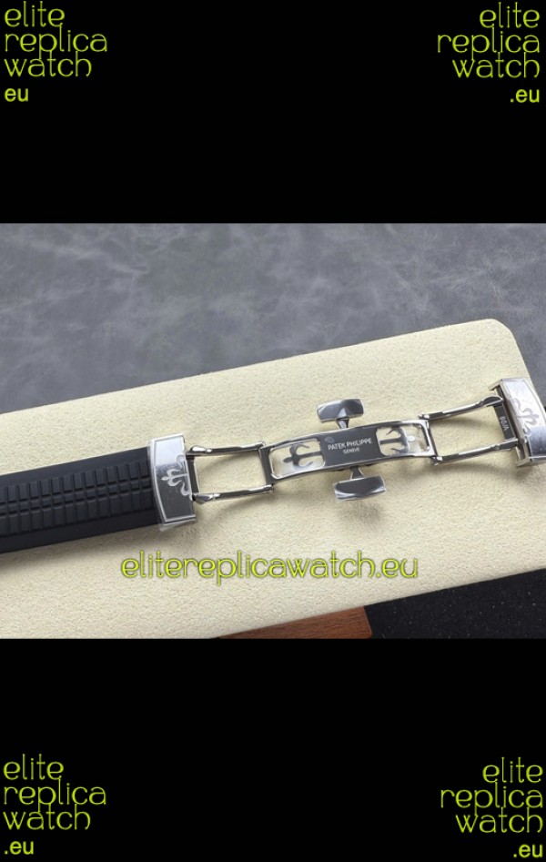 Curved Rubber Strap with Steel Folding Clasp complete with Patek Philippe Markings. A Highly Updated Clasps for this series with much more accurate markings/engravings.