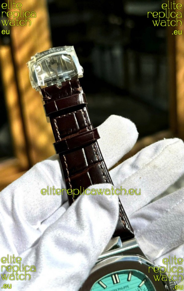 Genuine Leather Strap with Double Fold Stainlless Steel Clasps with Patek Philippe Markings/Engravings