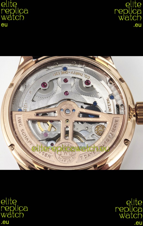 18K Rose Gold Plating on 904L Polished Solid Stainless Steel Case with IWC Markings and Engravings