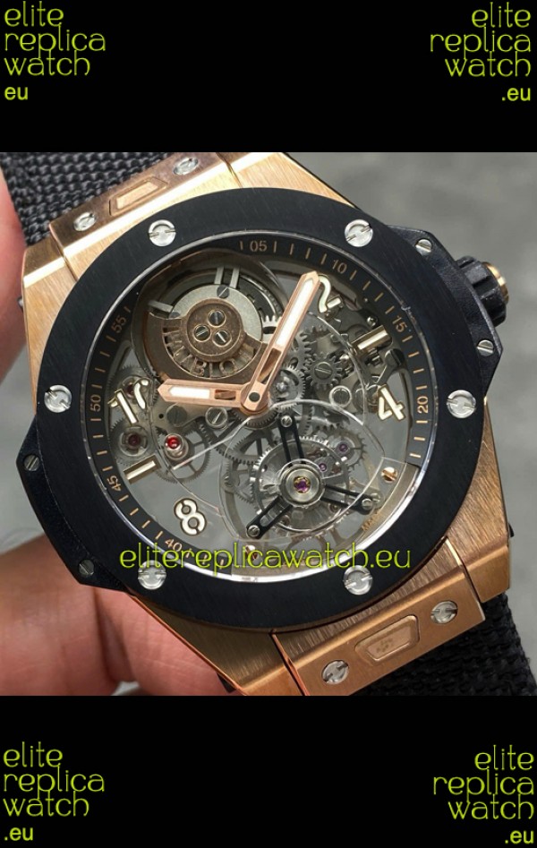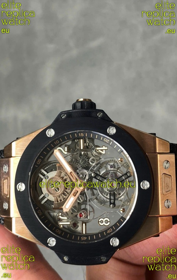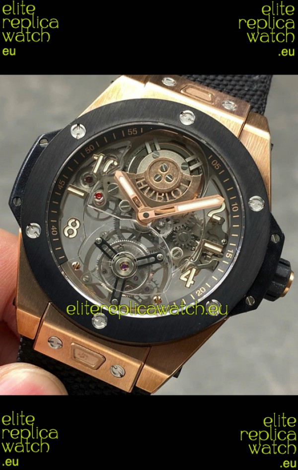 Hublot Big Bang Tourbillon Rose Gold Casing Ceramic Bezel Watch in 45MM 1:1 Mirror Replica