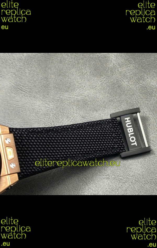 Nylon Strap with Steel Folding Clasp complete with Hublot Markings and Engravings.