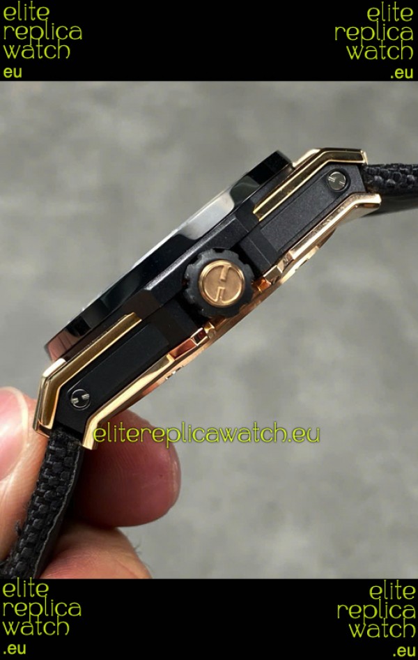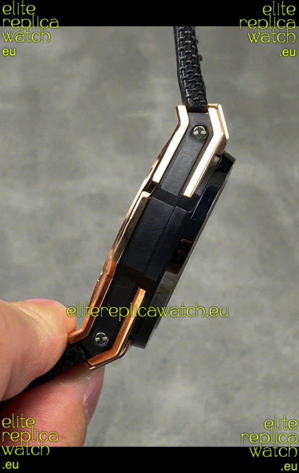 18K Rose Gold Plating on 904L Steel Casing. Ceramic Bezel