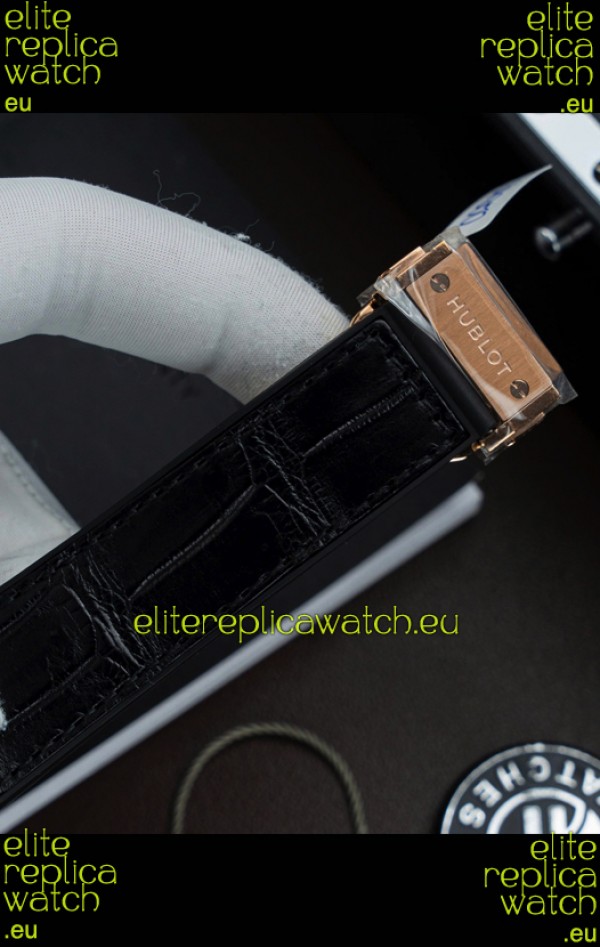 Crocodile Leather Strap with Rose Gold Folding Clasp complete with Hublot Markings and Engravings.
