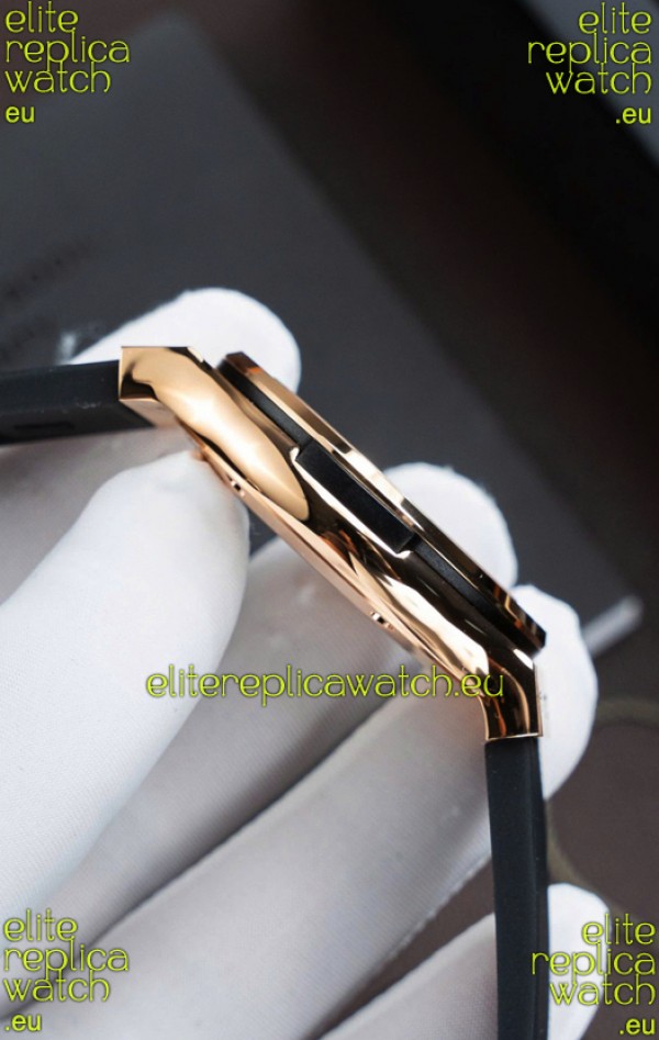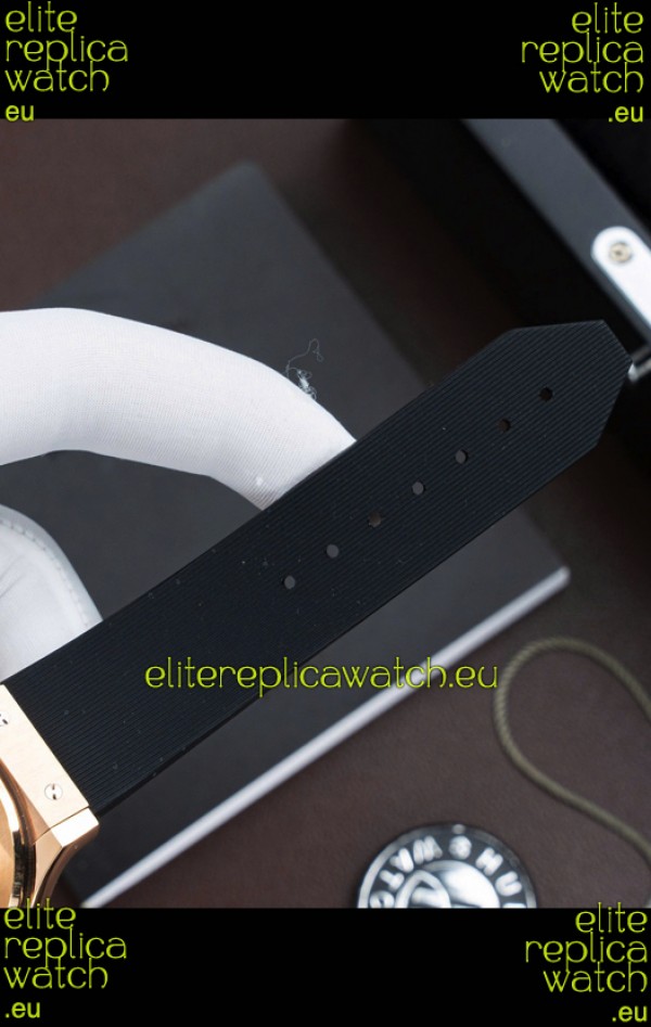 Genuine Rubber Strap with Rose Gold Folding Clasp complete with Hublot Markings and Engravings.
