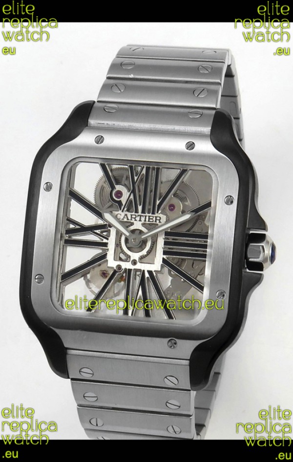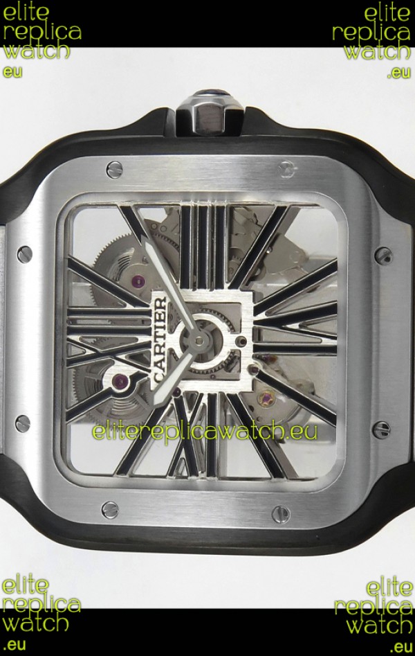 Santos De Cartier Super Clone Watch in Skeleton Dial Brushed DLC Coated Steel Casing Watch