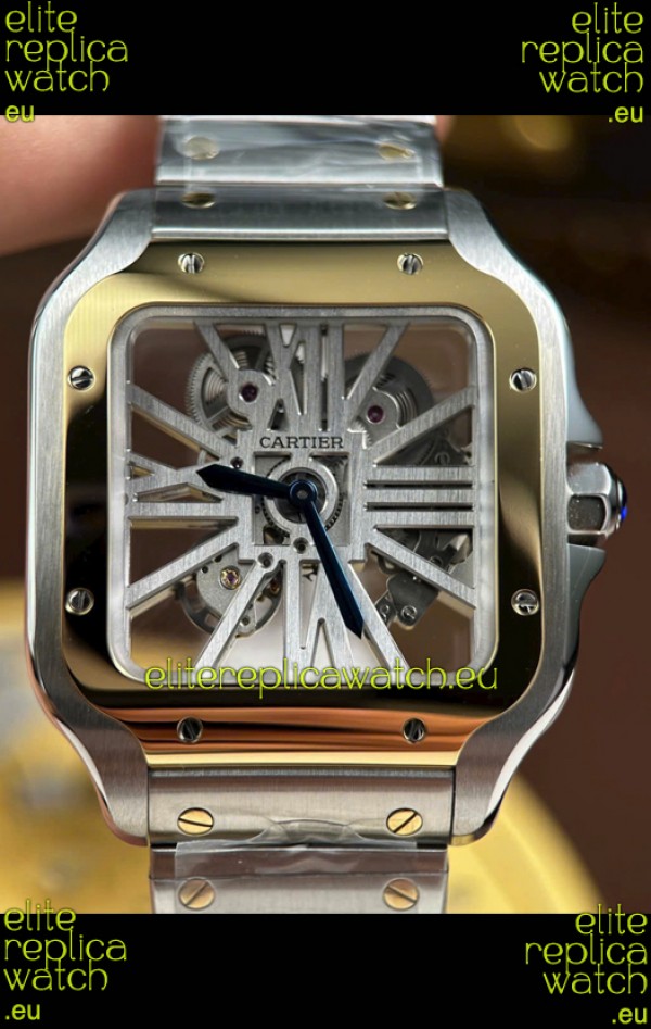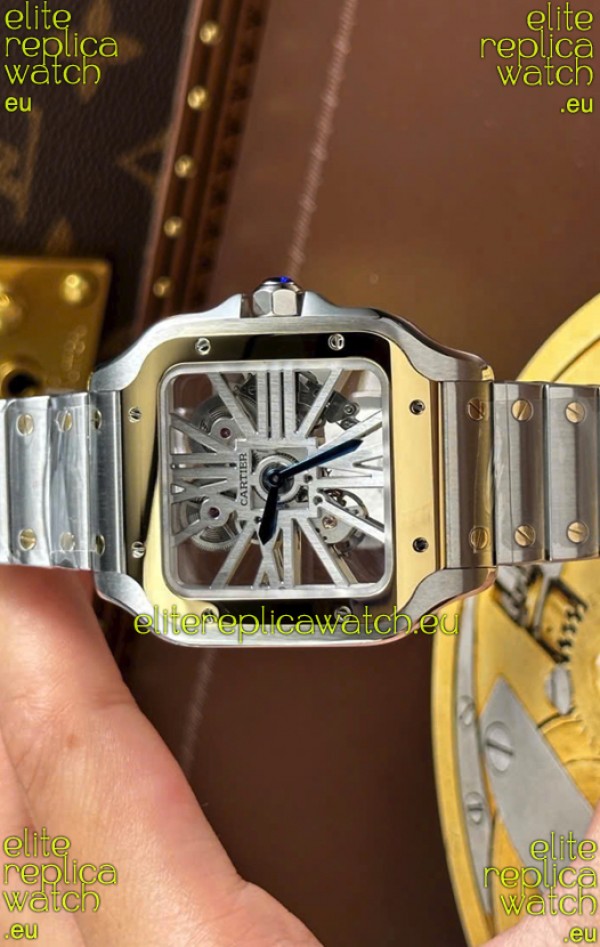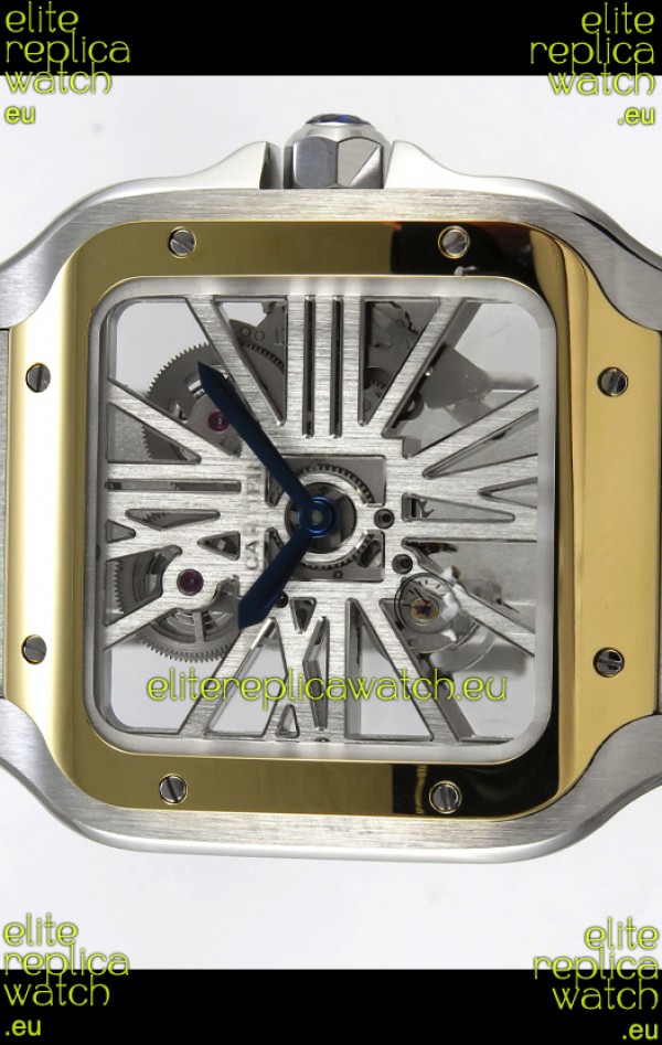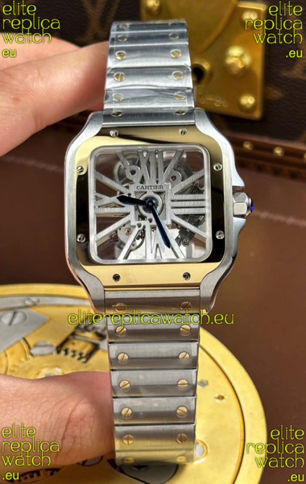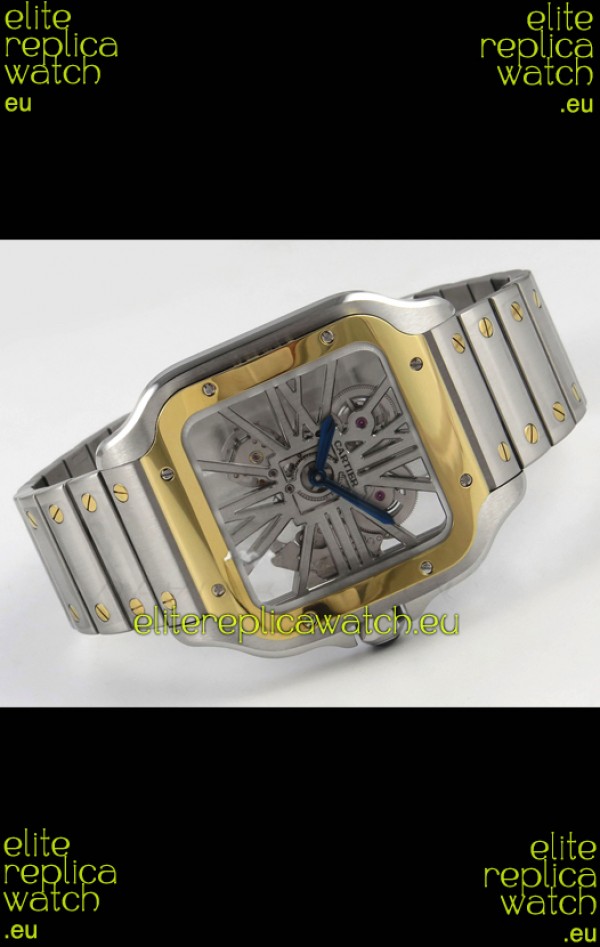 Santos De Cartier Super Clone Watch in Skeleton Dial Two Tone Casing Watch