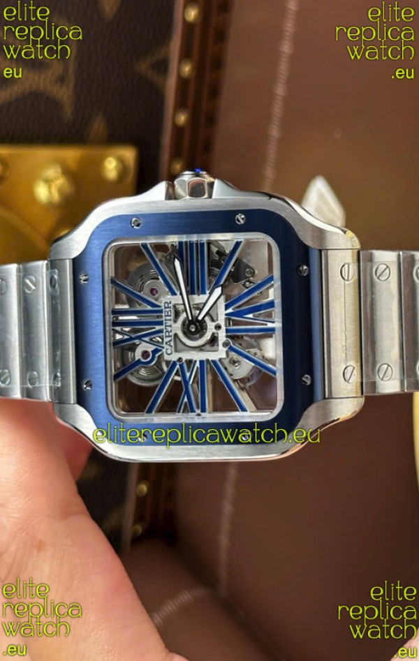 Santos De Cartier Super Clone Watch in Skeleton Dial Brushed Steel Casing Watch
