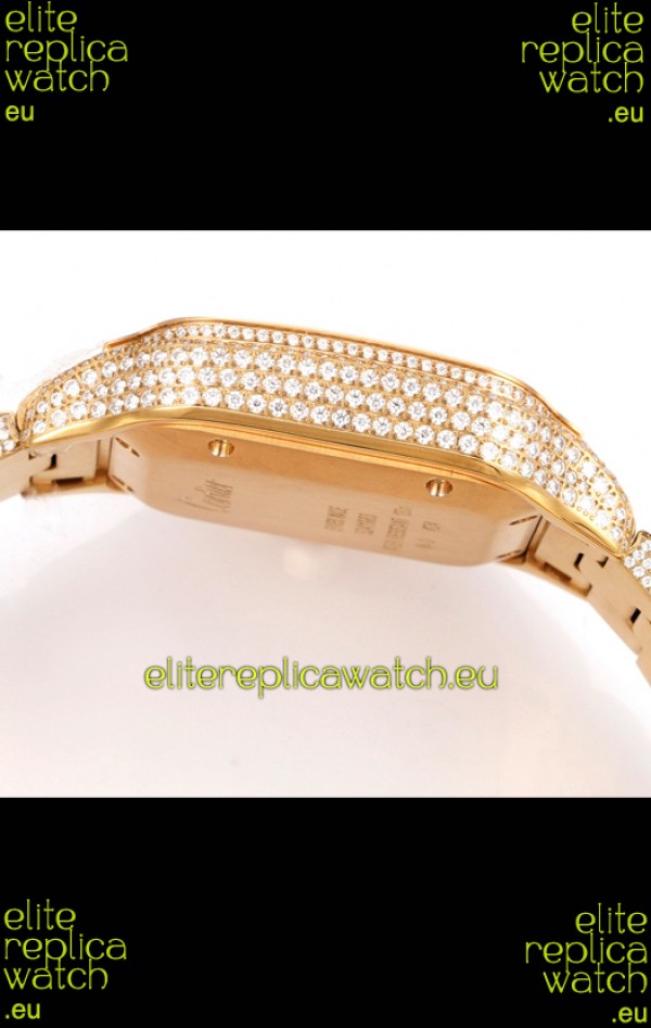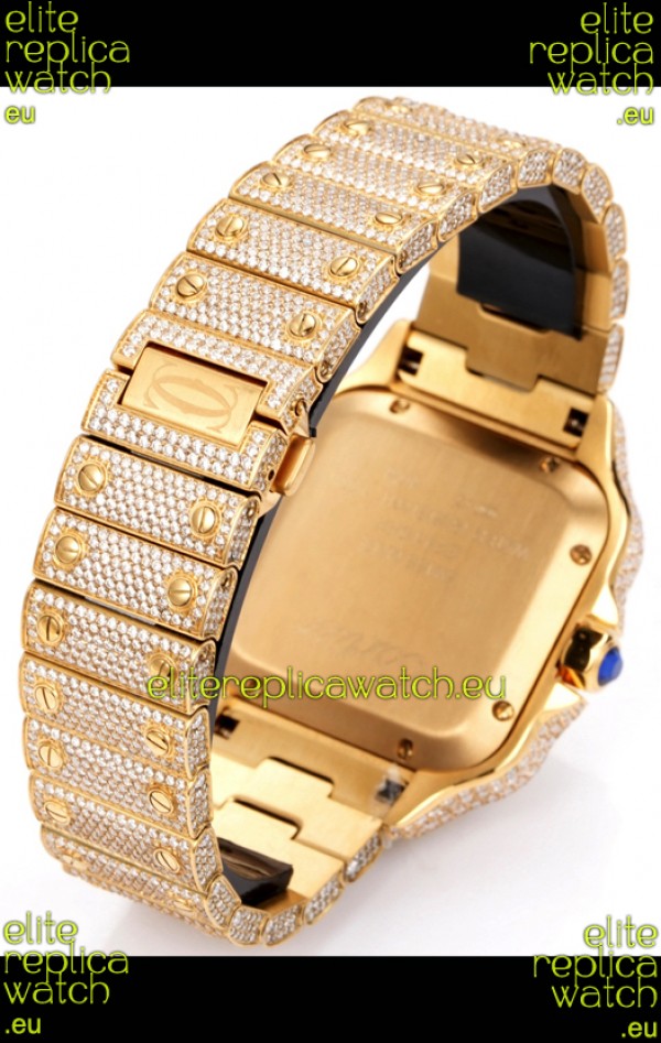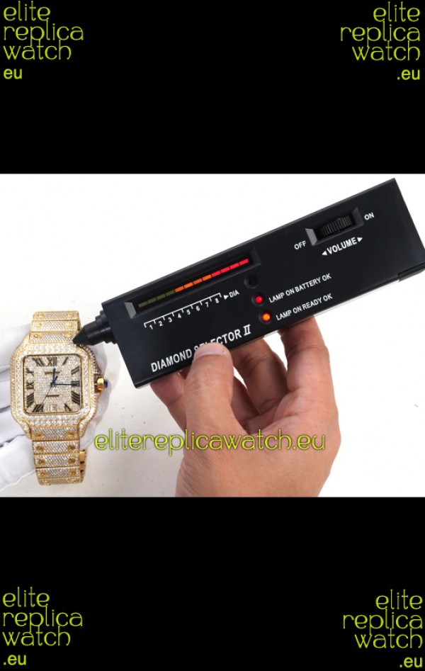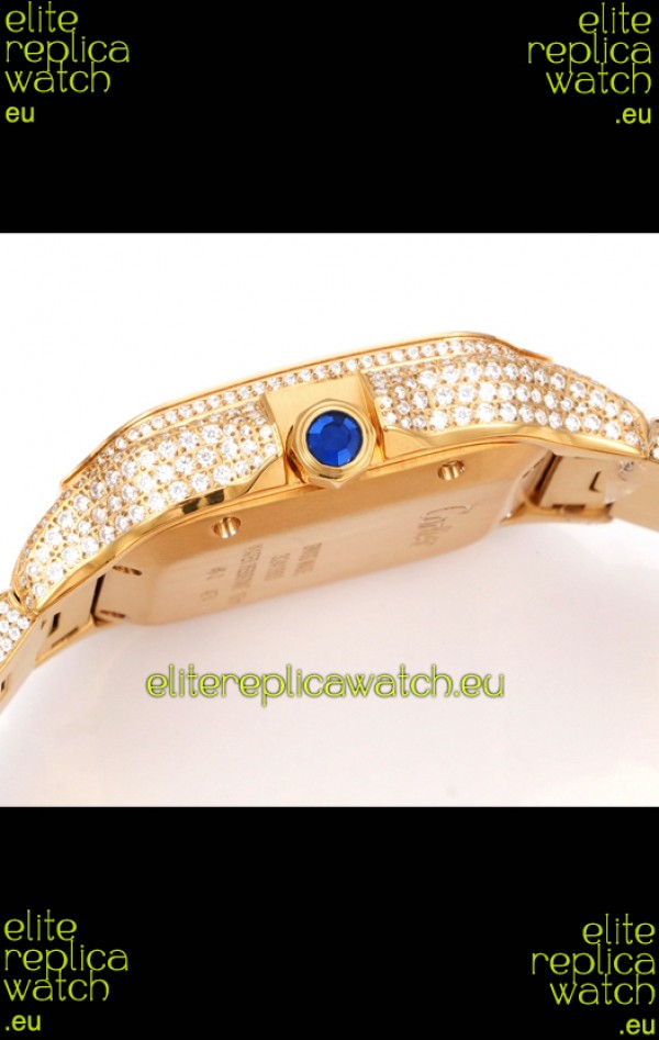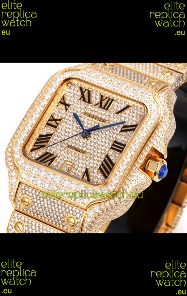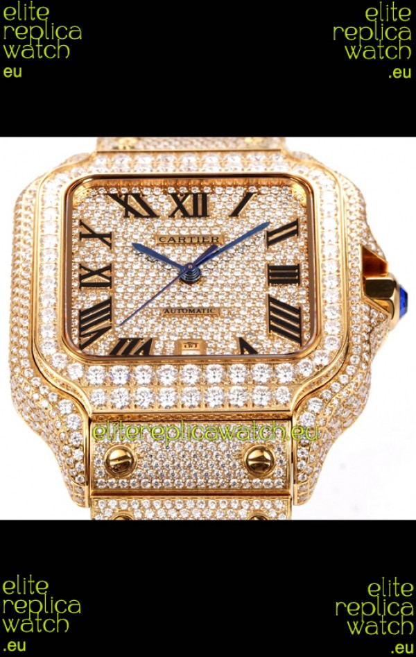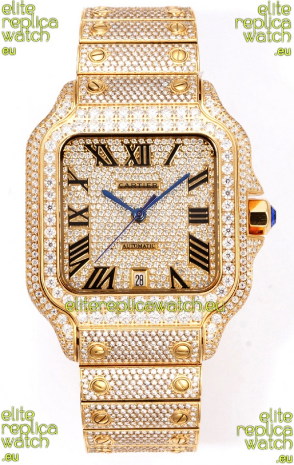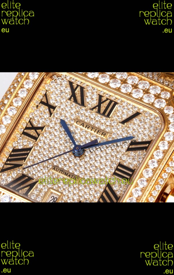 Cartier "Santos De Cartier" Yellow Gold W/ Diamonds Roman Dial 1:1 Mirror Replica - 40MM - Genuine Diamonds