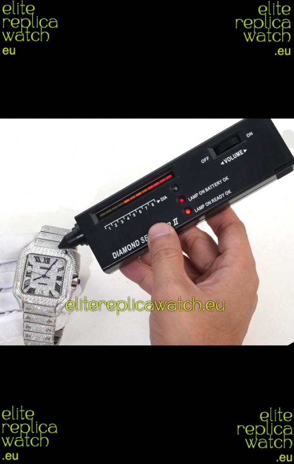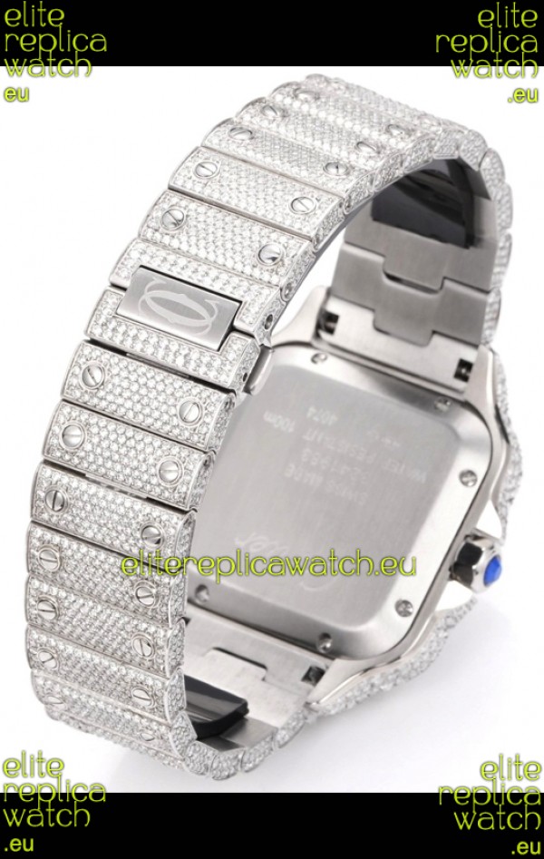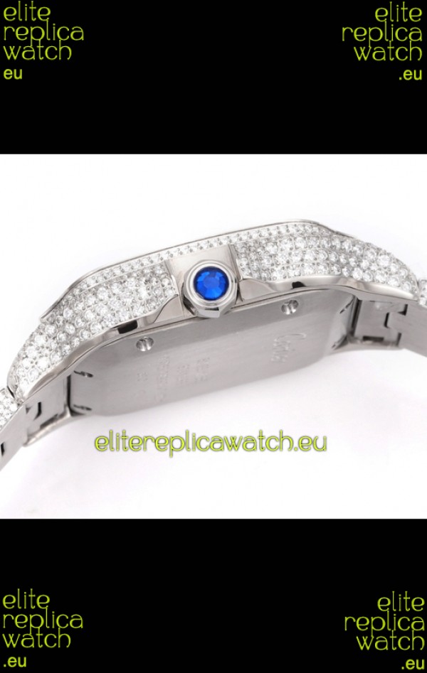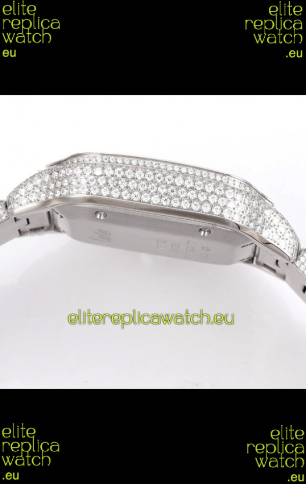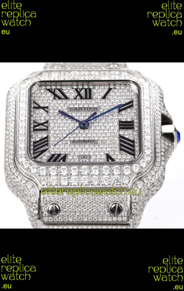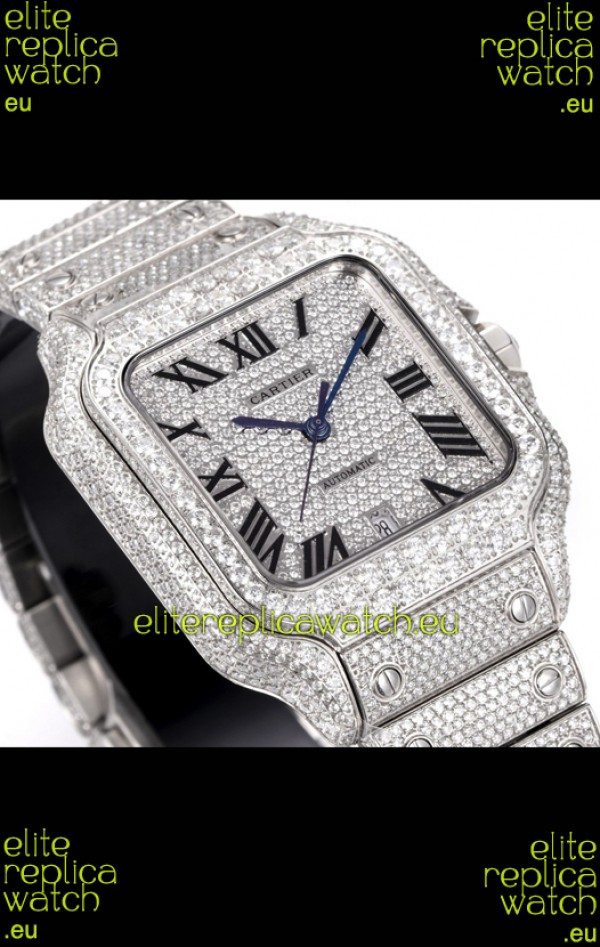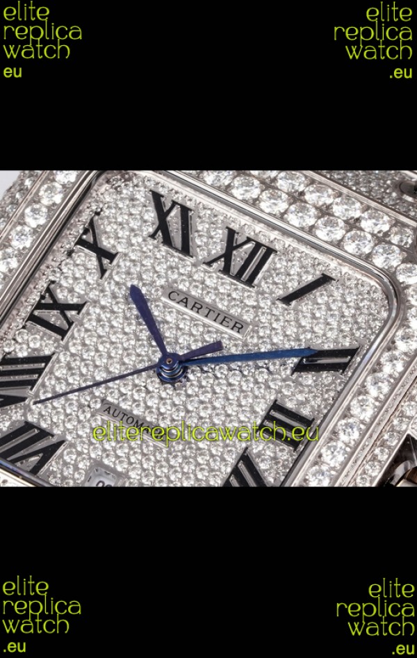 Cartier "Santos De Cartier" Stainless Steel W/ Diamonds Roman Dial 1:1 Mirror Replica - 40MM - Genuine Diamonds