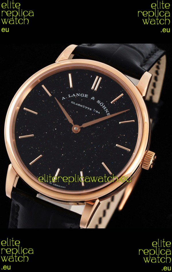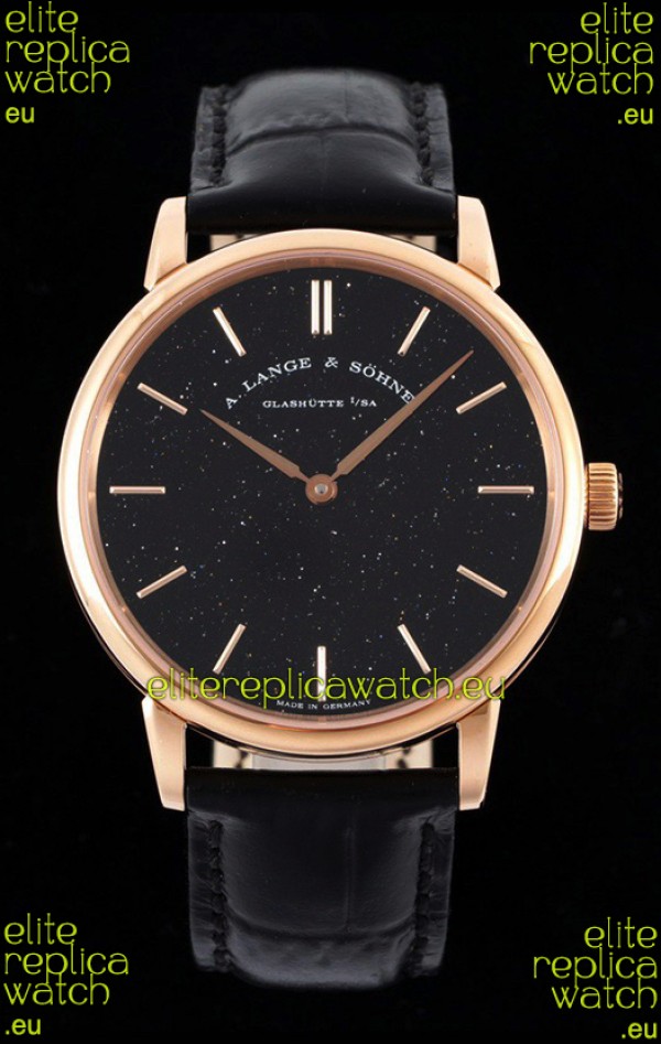 A.Lange & Sohne Saxonia Thin Swiss Replica Watch Rose Gold Case Black Starry Dial