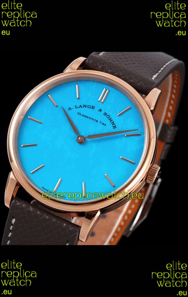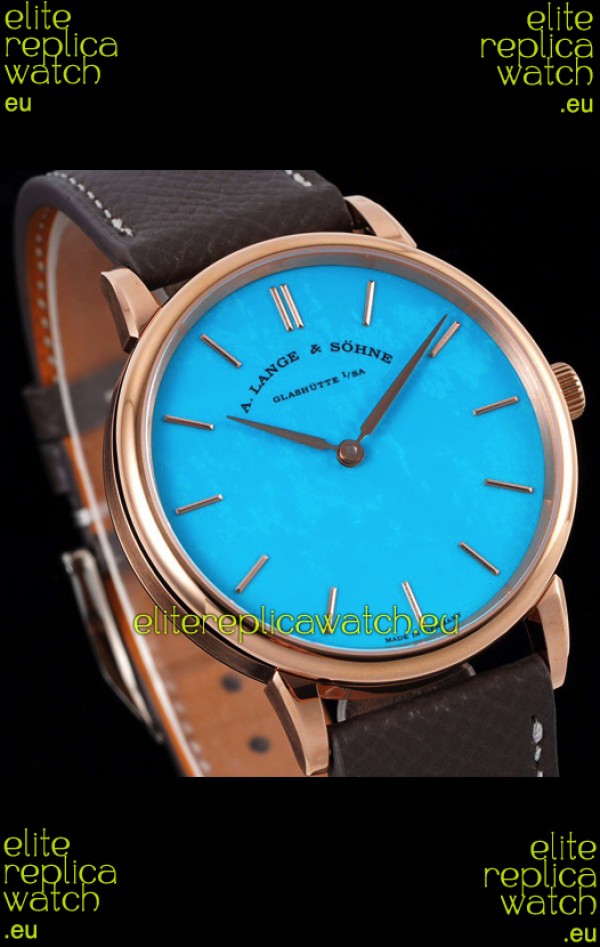 A.Lange & Sohne Saxonia Thin Swiss Replica Watch Rose Gold Case Tiffany Blue Dial