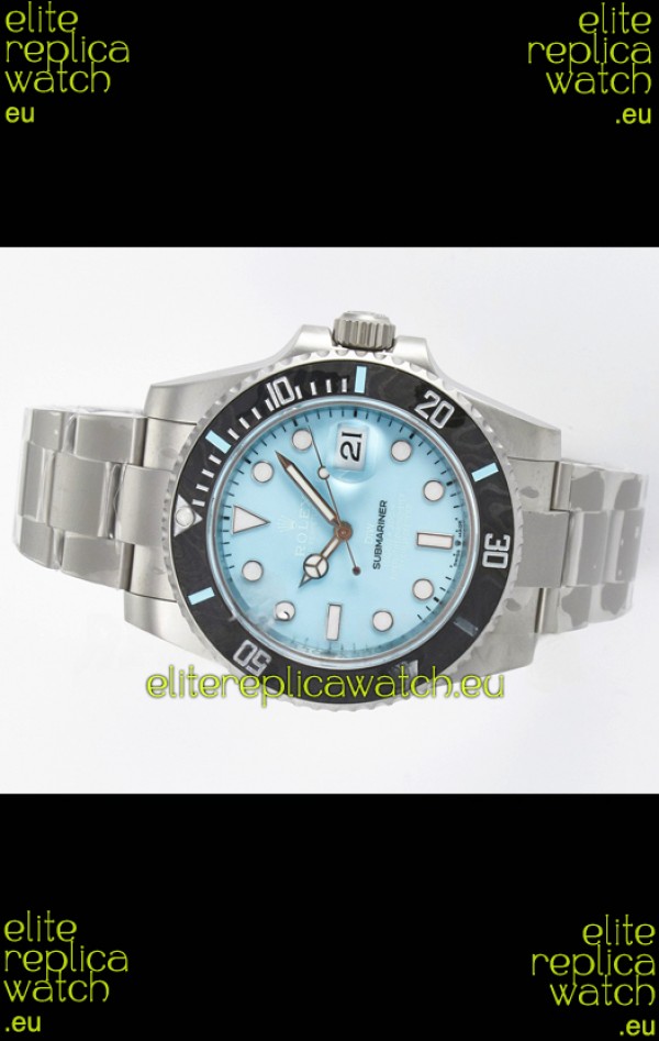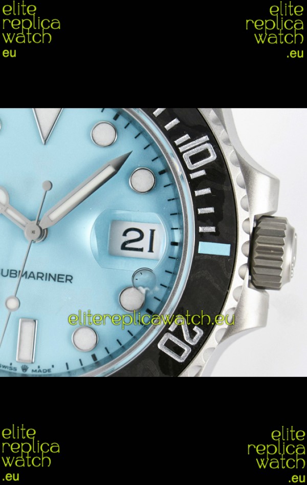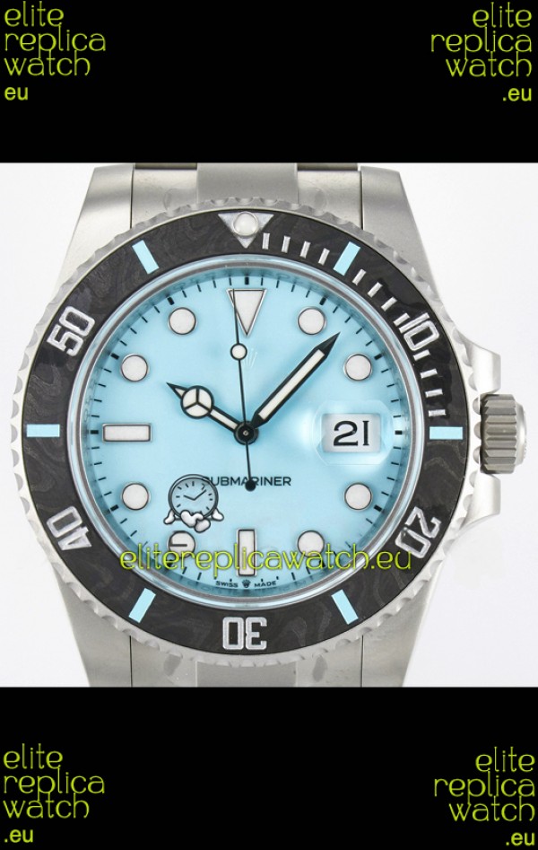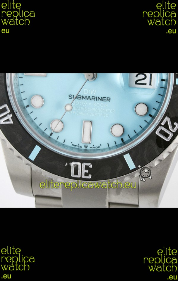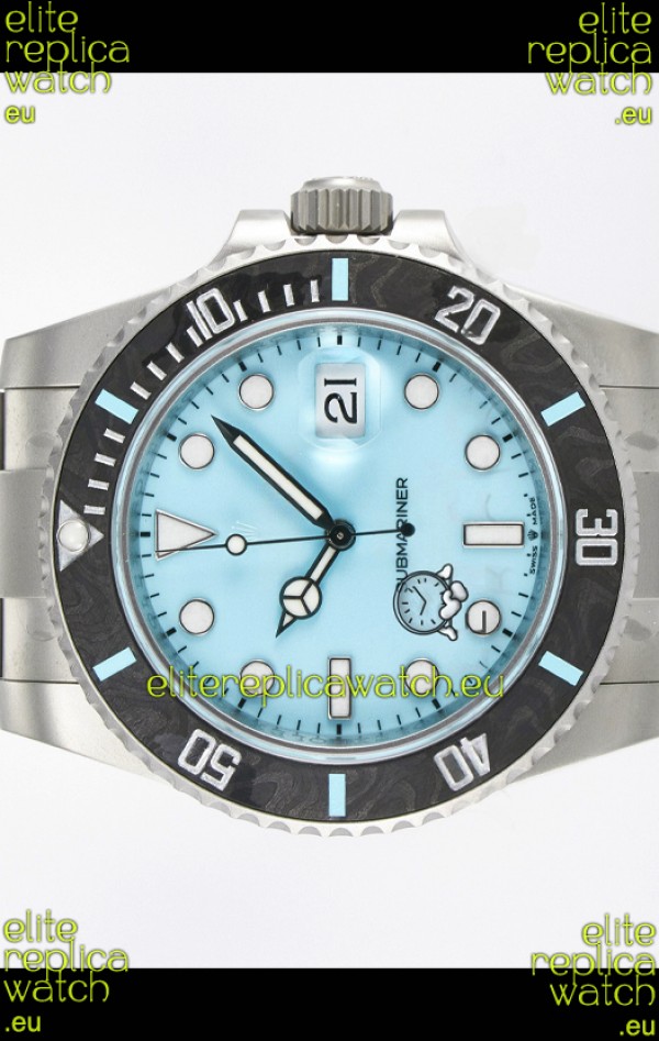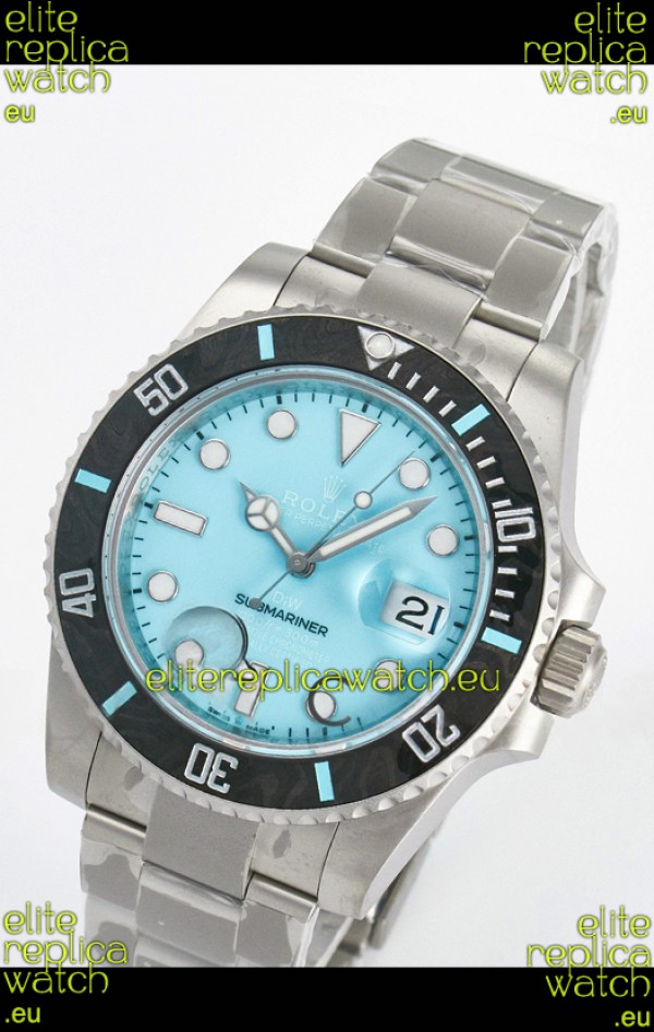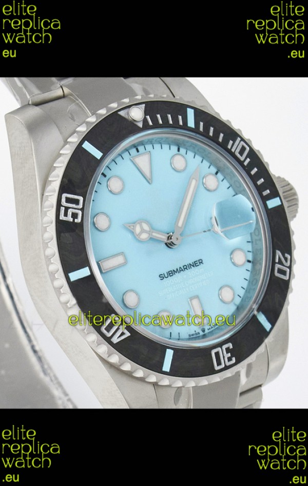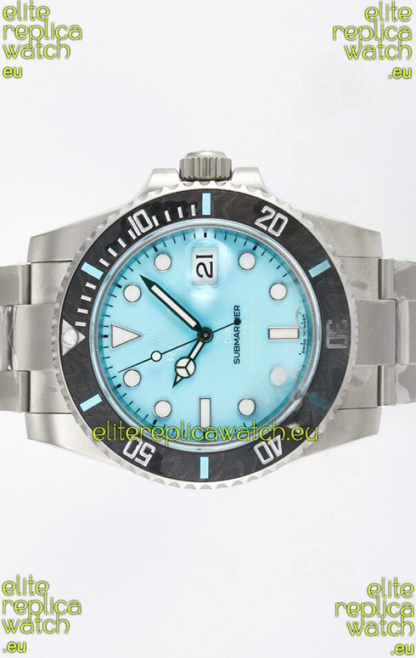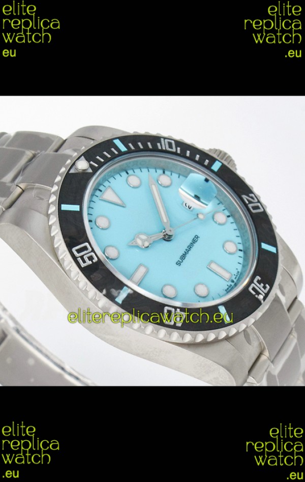 Rolex Submariner DiW Sandblasted Steel Casing Carbon Fiber Bezel Watch Tiffany Blue Dial
