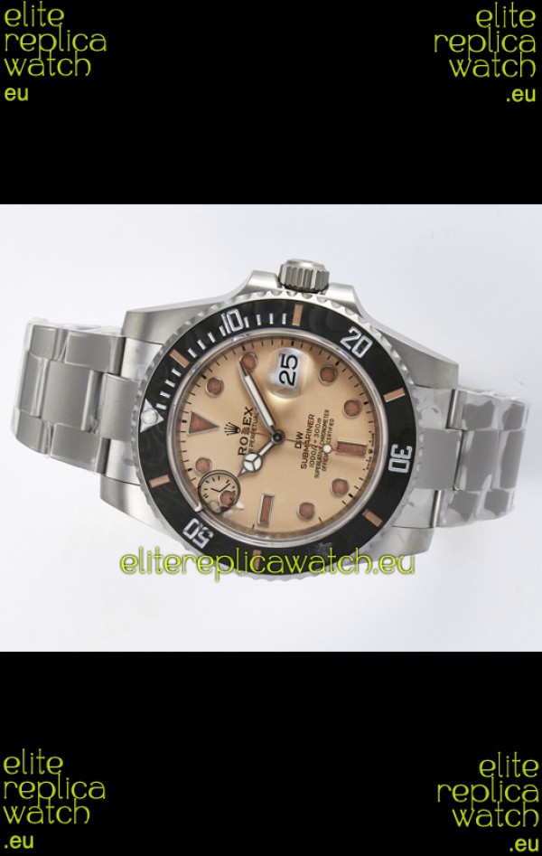 Rolex Submariner DiW Sandblasted Steel Casing Carbon Fiber Bezel Watch Beige Dial