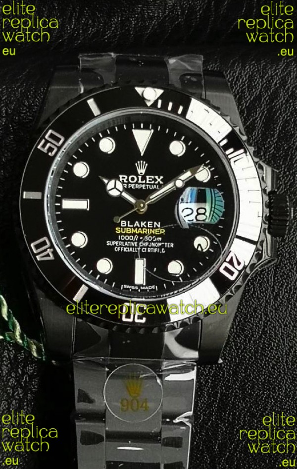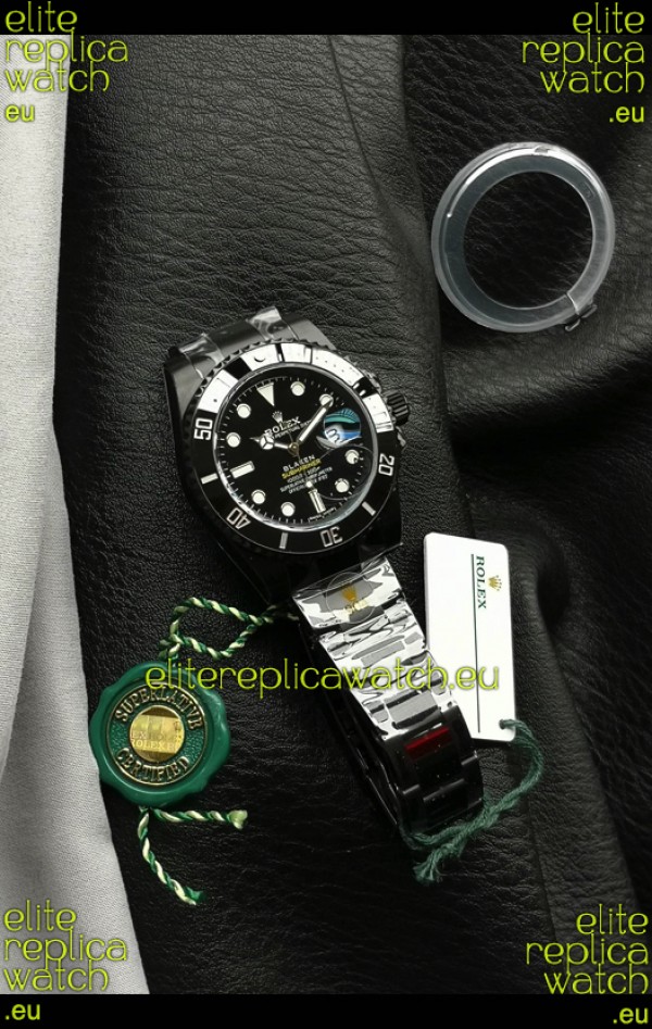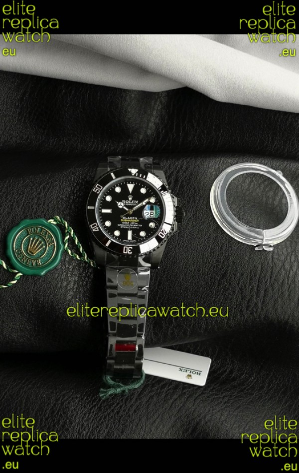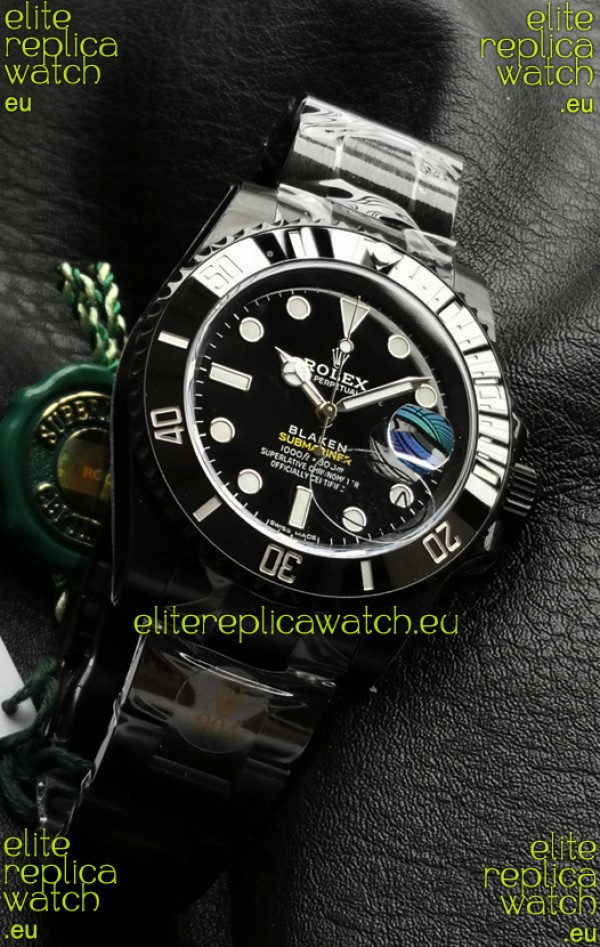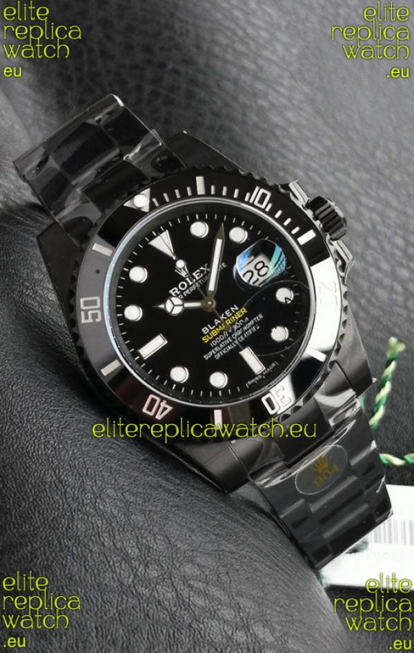 Rolex Submariner Blaken DLC Coated Swiss Replica Watch in Black Dial