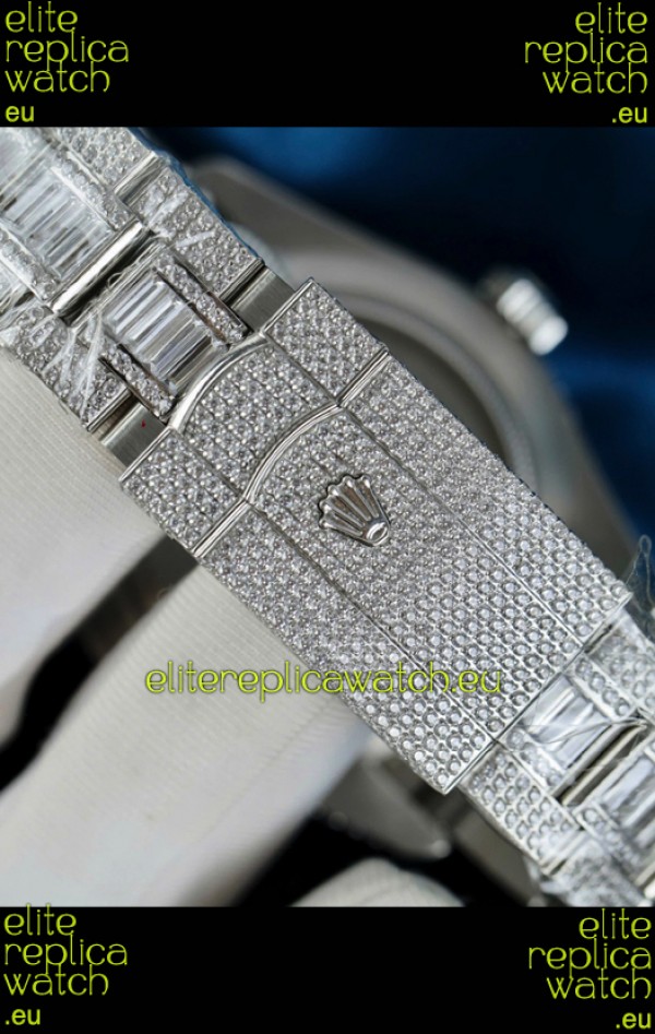 Mossanites Embedded on 904L Stainless Steel Case with Solid Case Back complete with Rolex Markings and Engravings
