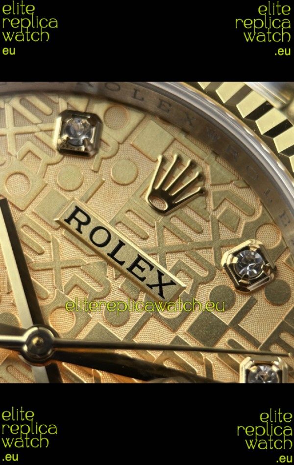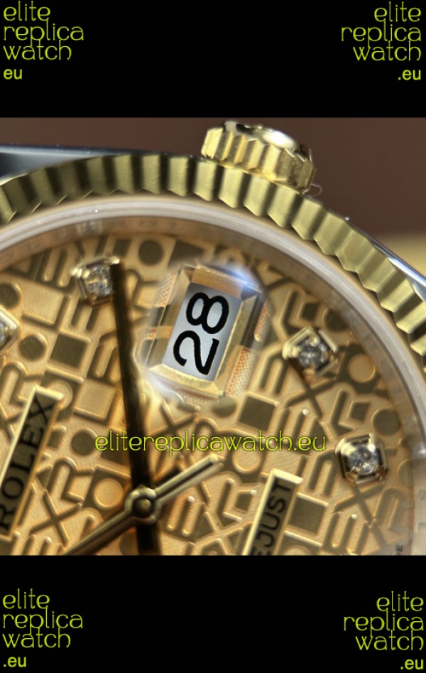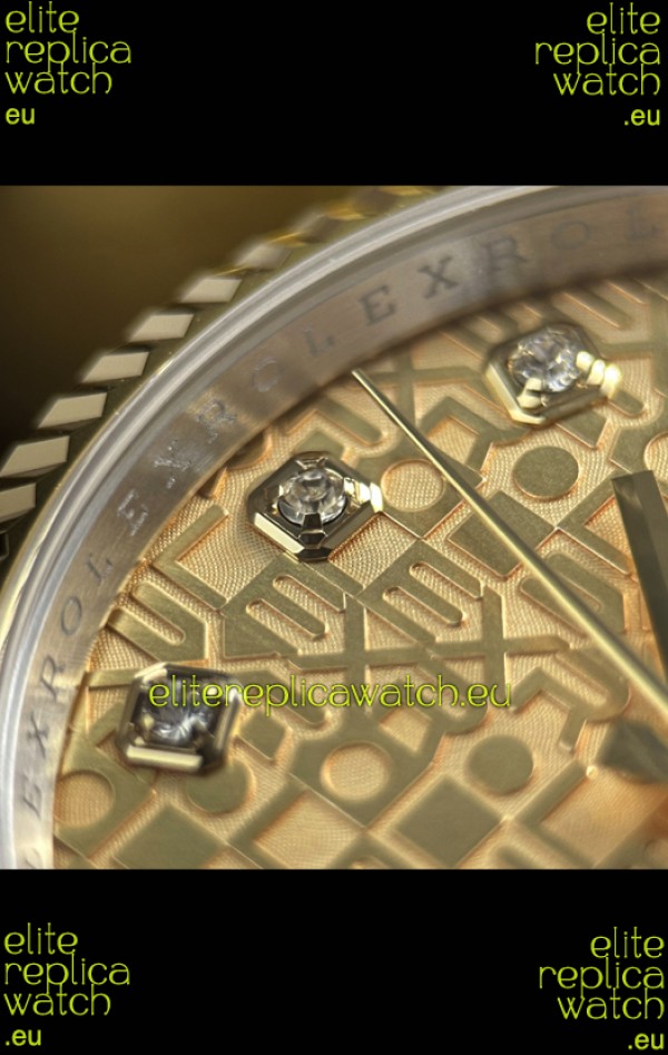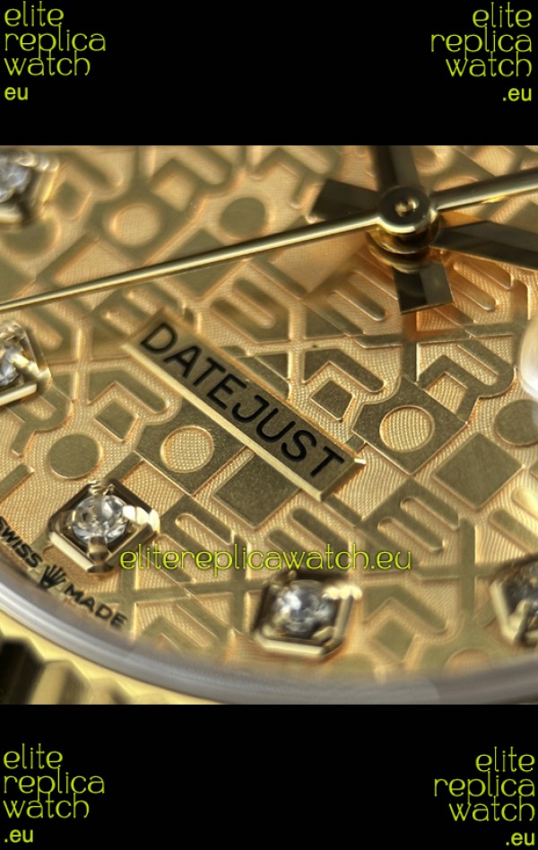 Gold Computer Dial with Diamonds Hour Numerals and Date Indicator
