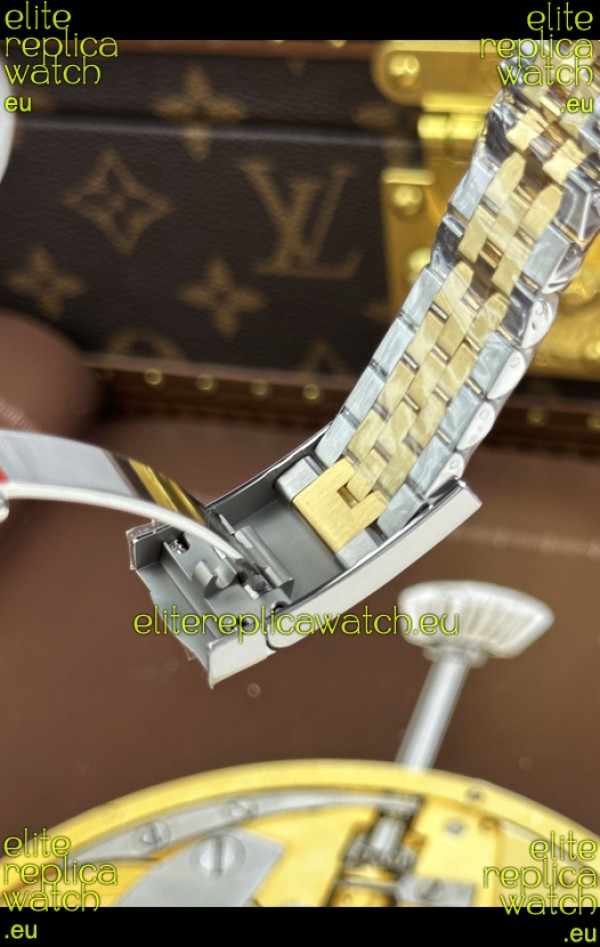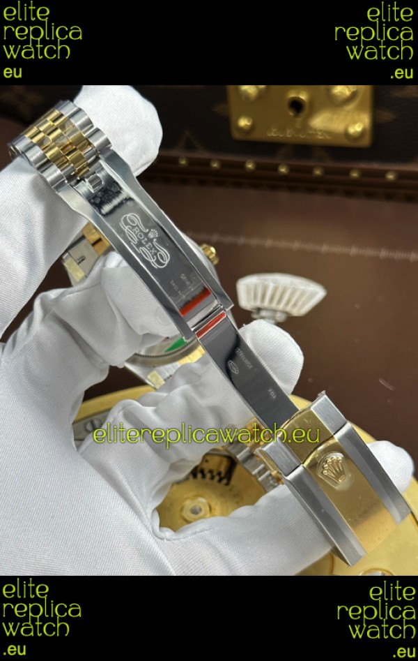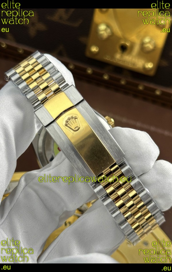 18K Yellow Gold Plating Two Tone 904L Stainless Steel Two Tone Strap with New Style Rolesor Deployant Buckle, End links match up Flush with the Case. - A Much Improved Datejust Strap Version