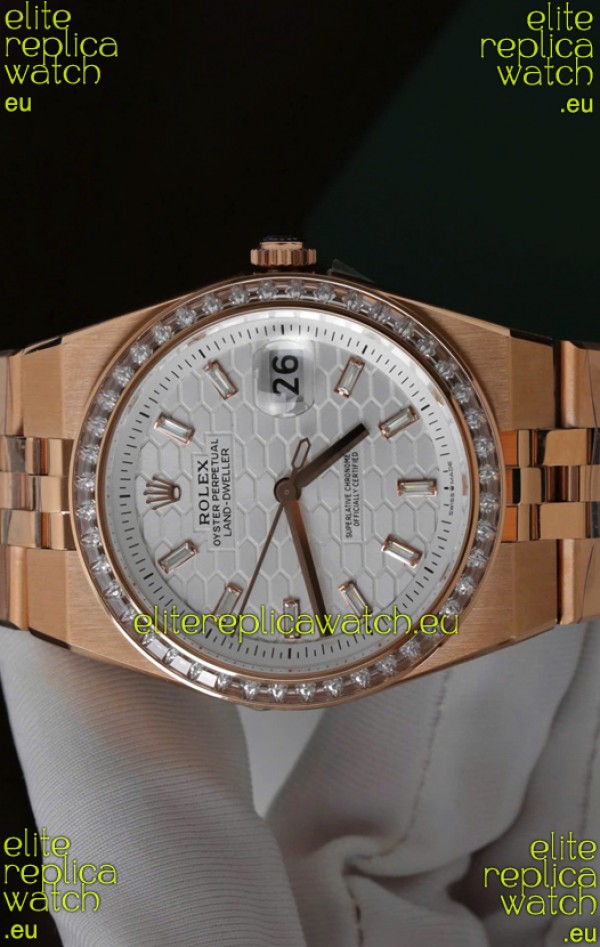 Rolex Land-Dweller 127335 Steel Honeycomb Rose Gold 40MM Swiss Replica Watch