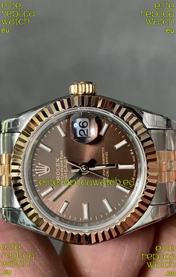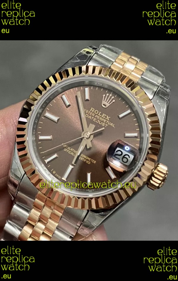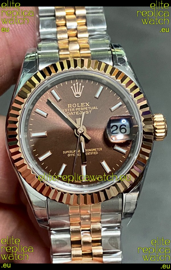 Rolex Datejust Super Clone Brown Dial 2 Tone Rose Gold Watch 28MM