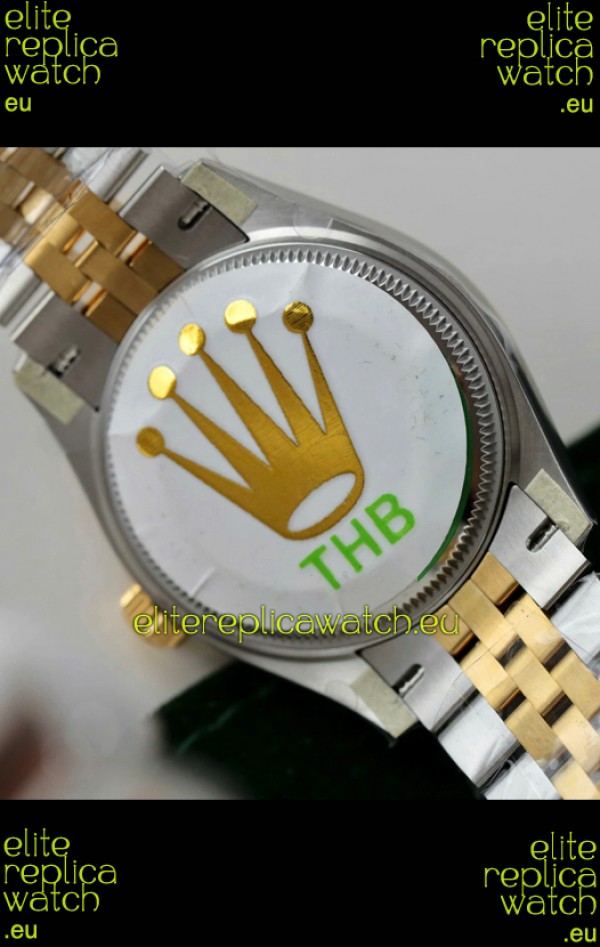 18K Yellow Gold Plating on 904L Stainless Steel Two Tone Polished Case with Bezel as per the original.