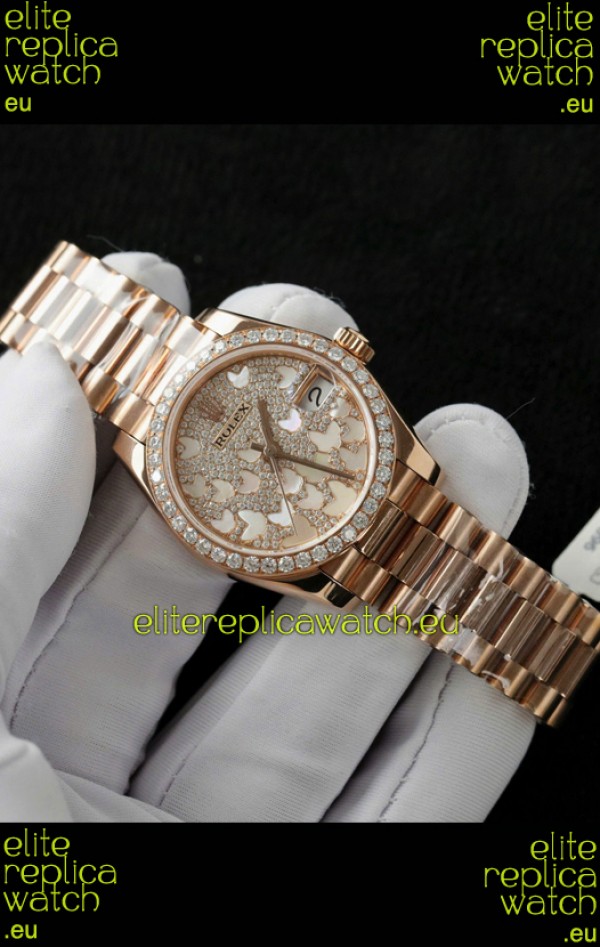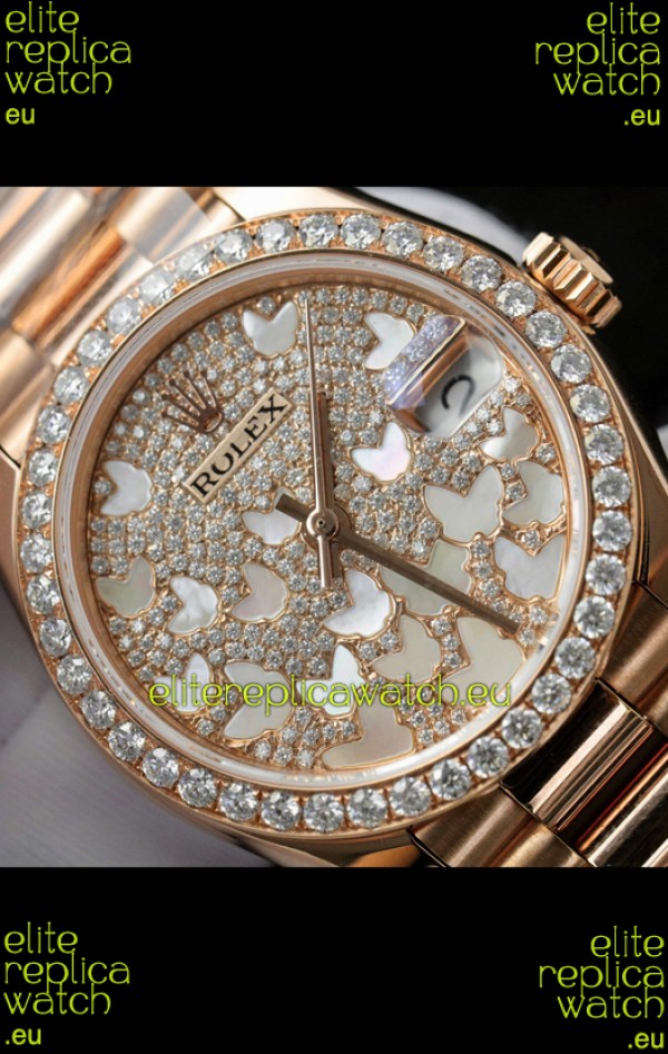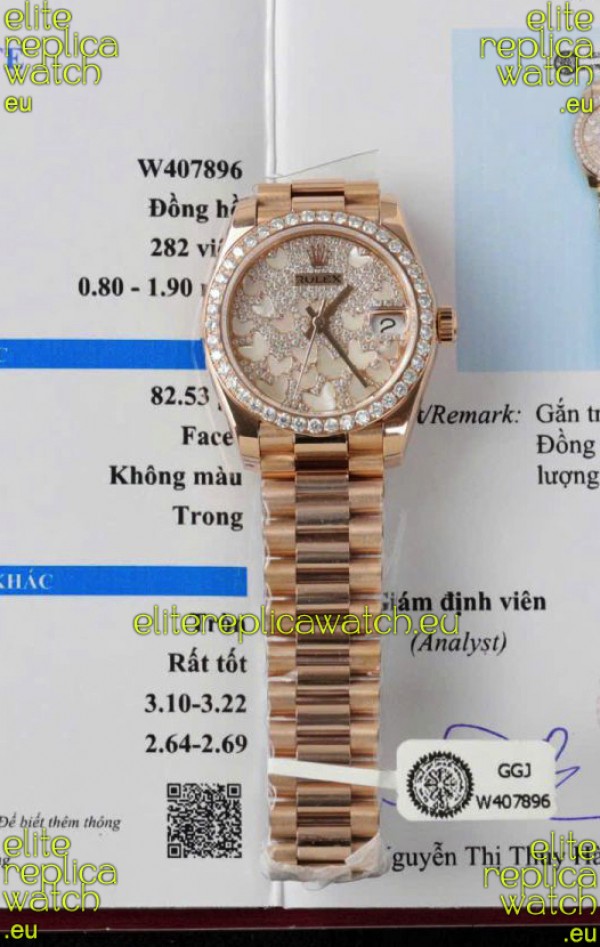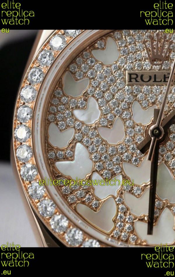 Rolex Datejust Super Clone Mossanites Butterfly Dial 31MM Rose Gold Watch