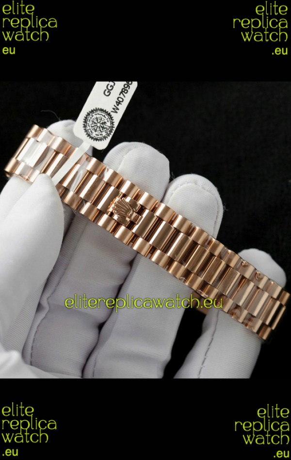 18K Rose Gold Plating on 904L Stainless Steel Two Tone Strap with New Style Rolesor Deployant Buckle, End links match up Flush with the Case. - A Much Improved Datejust Strap Version