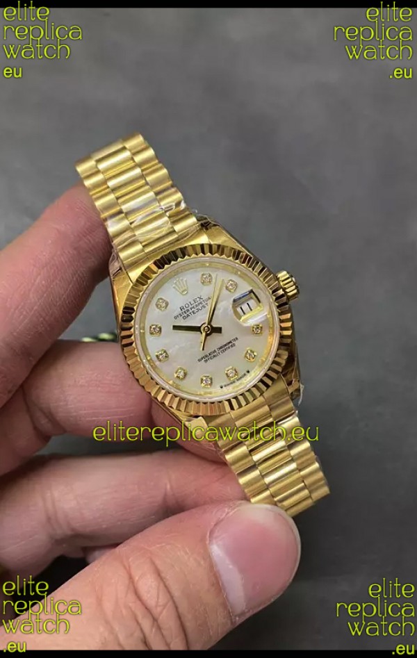 Rolex Datejust Super Clone Pearl Dial Yellow Gold Casing Watch 28MM